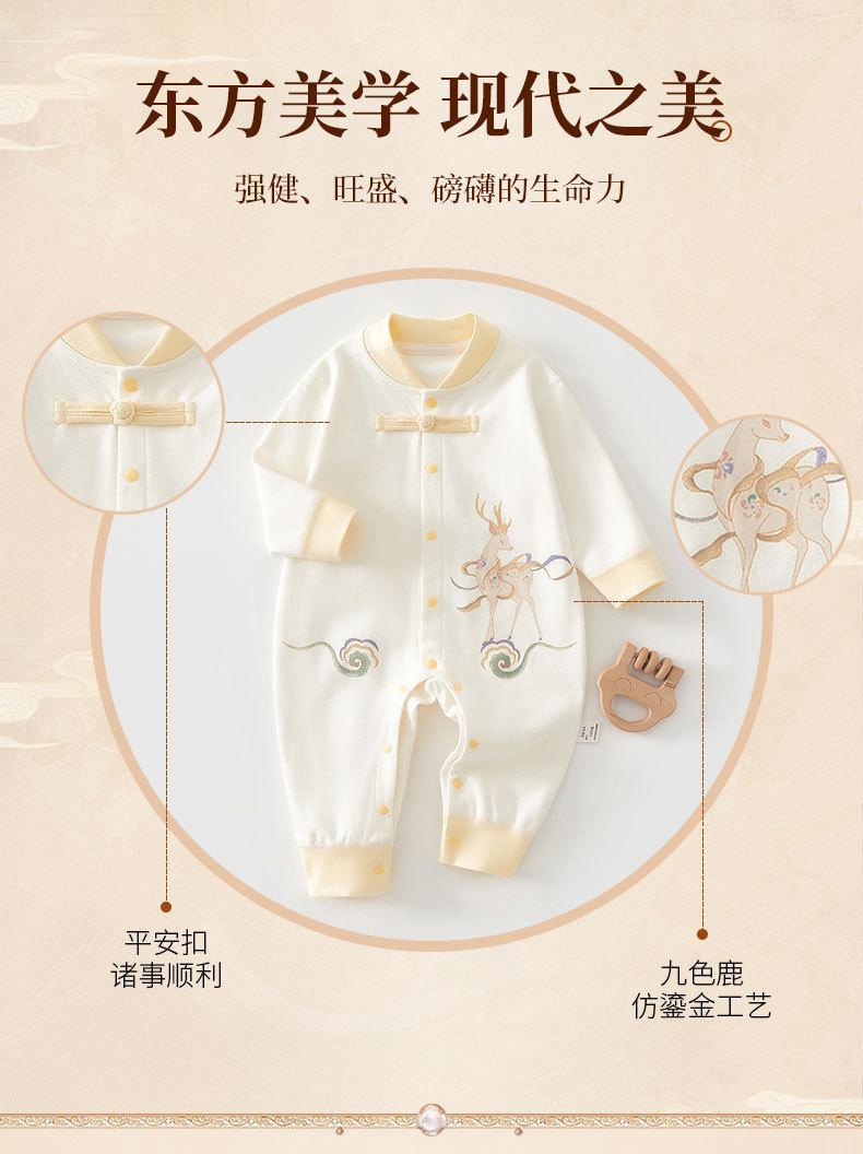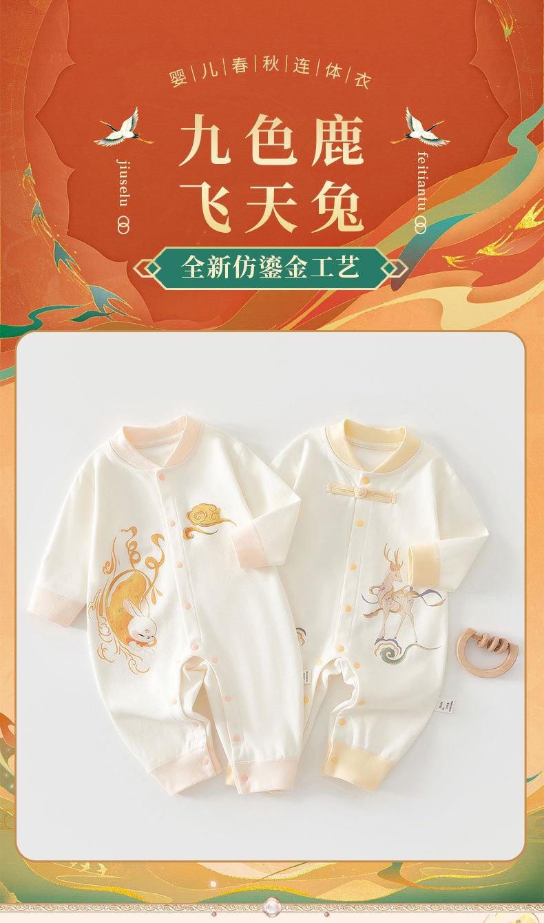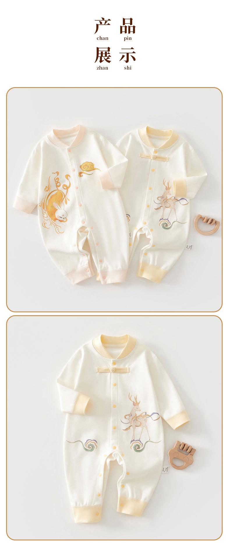 Ropa de Bebé Primavera Otoño Mameluco Algodón Puro Estilo Dunhuang Traje para Gatear Pijama para Recién Nacido Manga Larga Niños y Niñas Mono de Bebé