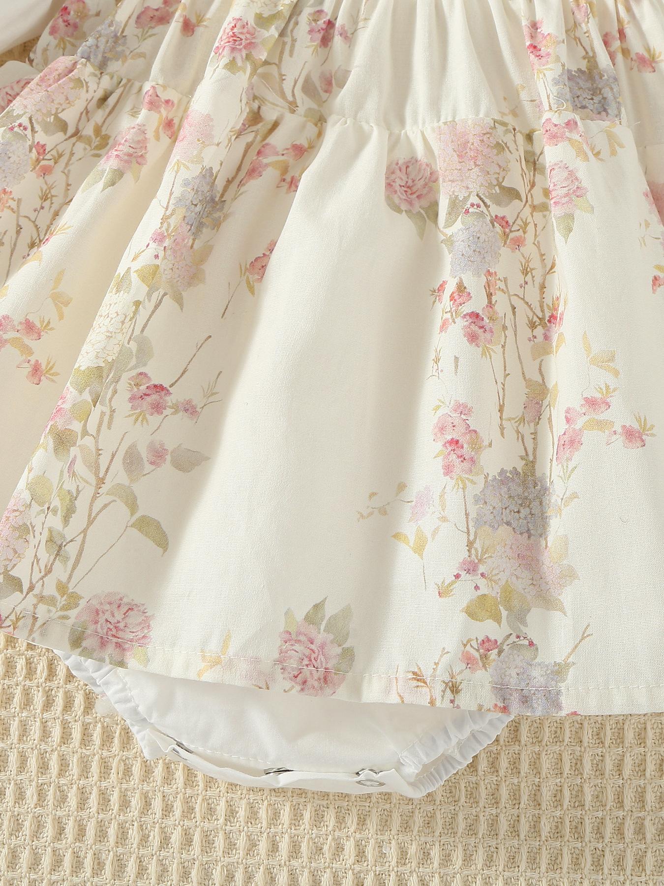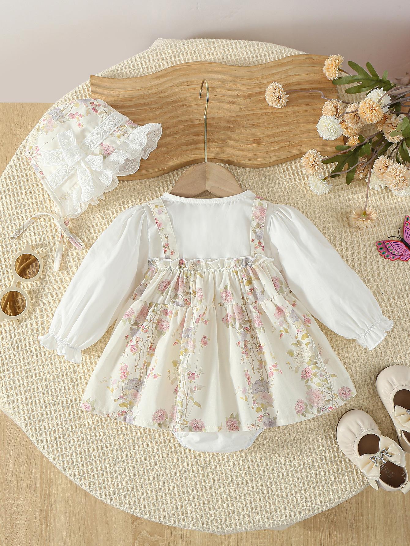 2025 Primavera Nuevo Bebé Niña Dulce Floral Manga Larga Mameluco Moda Infantil Hermana Conjunto Vestido de Niña