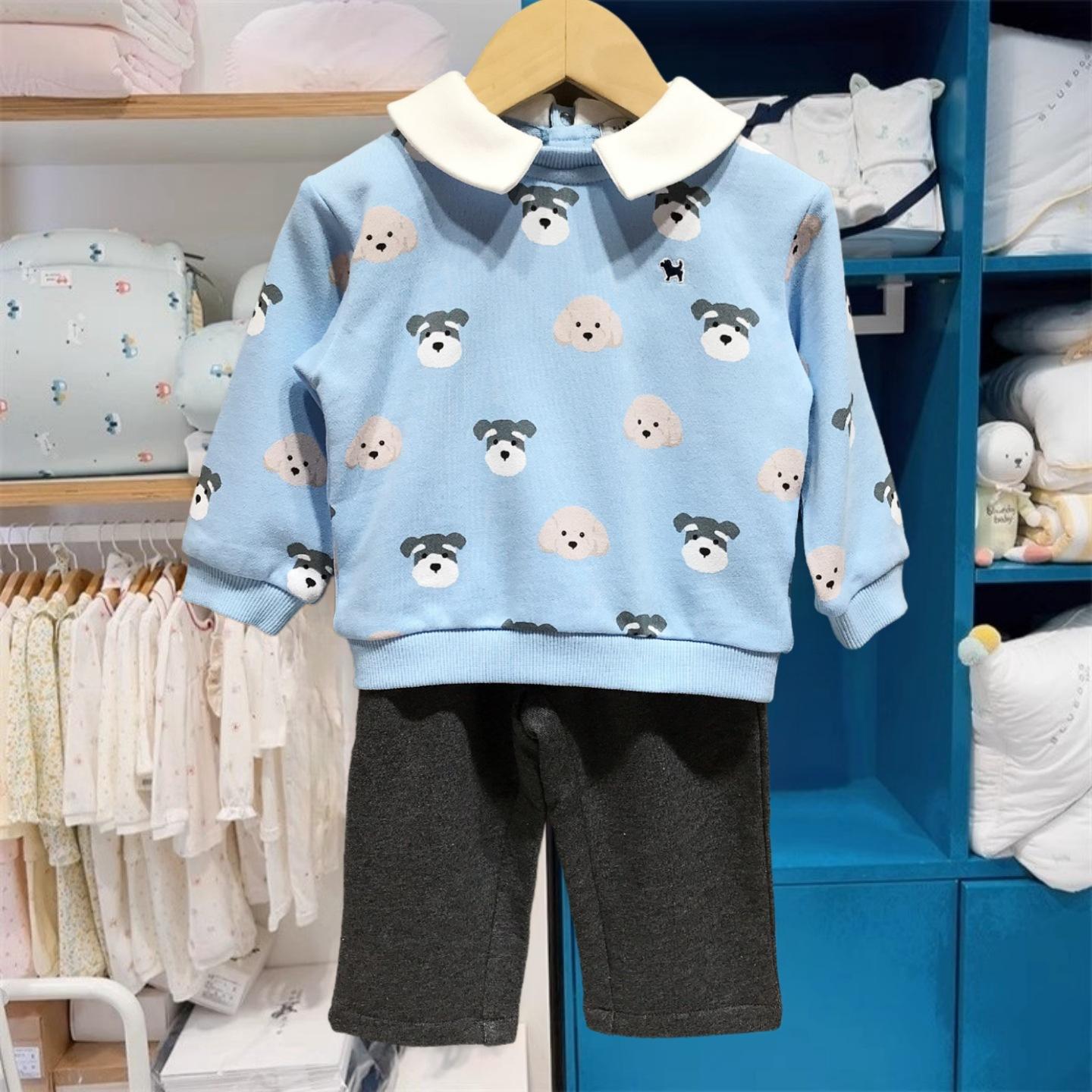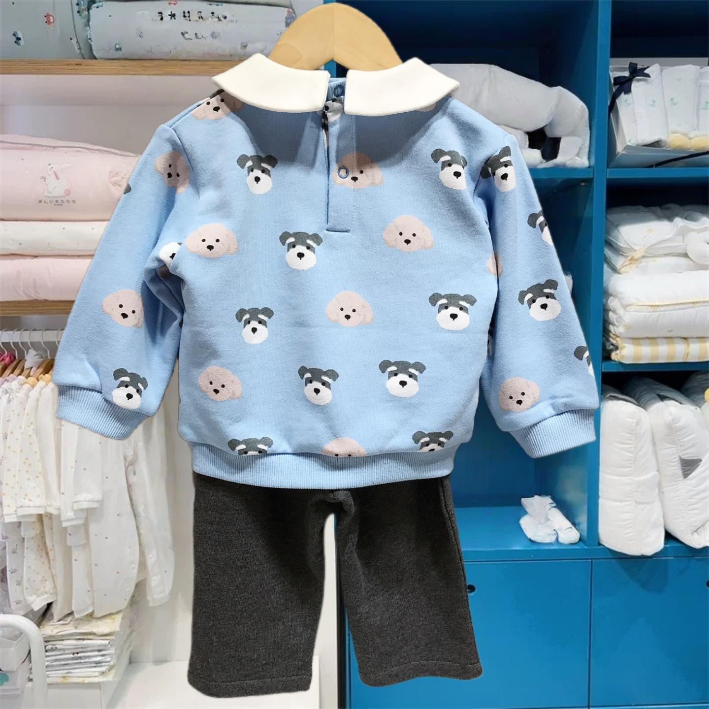 Ropa Original D para Niños Coreana Estilo Otoño Niños y Niñas Camisa para Bebé Estampado de Cuello Sudadera Pantalones Conjunto de Dos Piezas MS591702