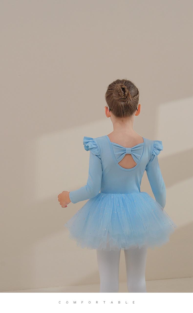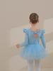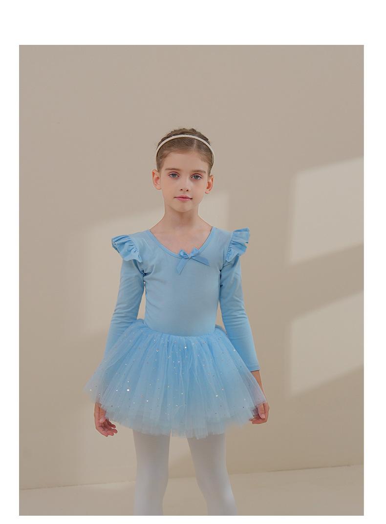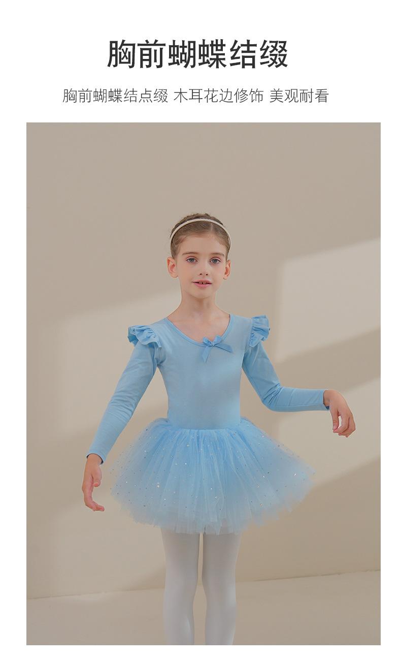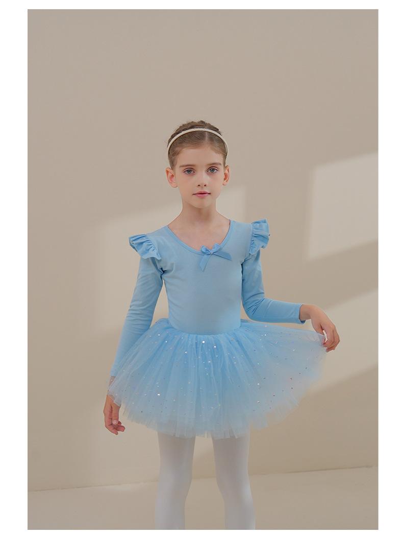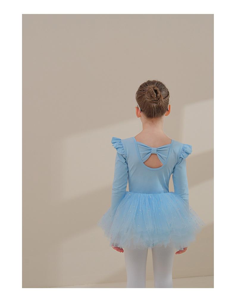 Ropa de Danza para Niñas Manga Larga Algodón Puro Azul Ropa de Práctica para Niñas Vestido de Ballet para Niñas Pequeñas Ropa de Práctica de Danza China