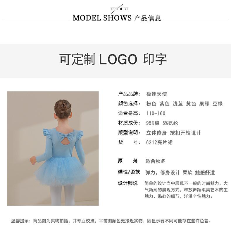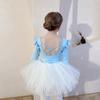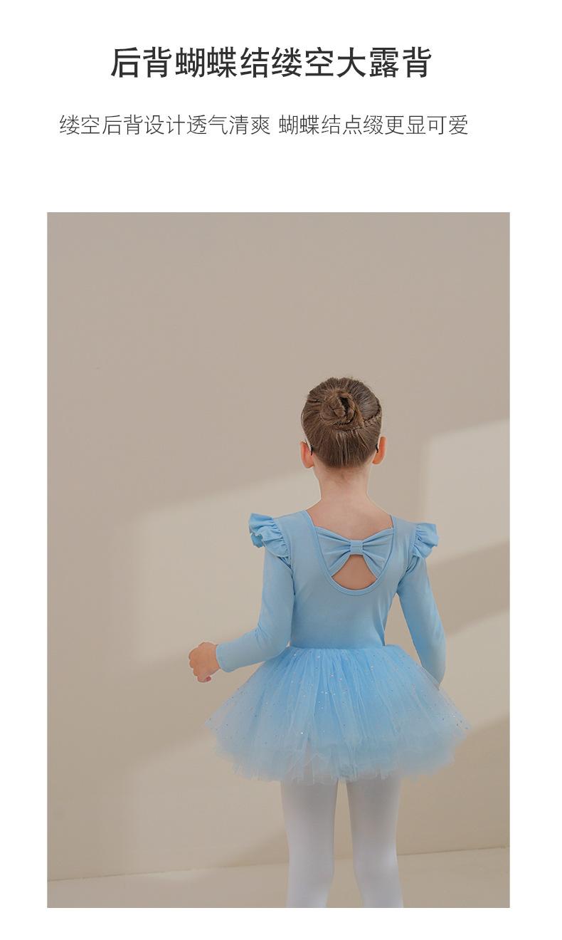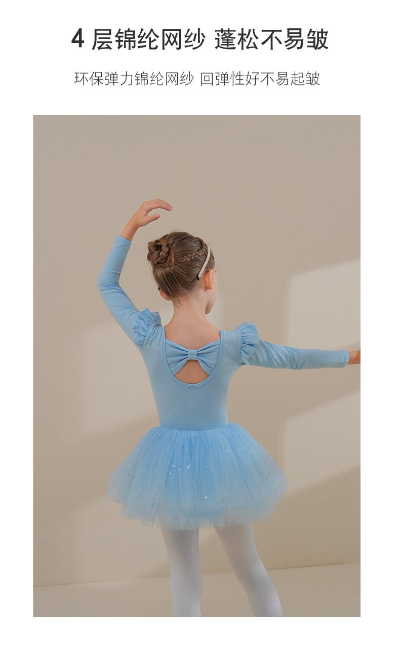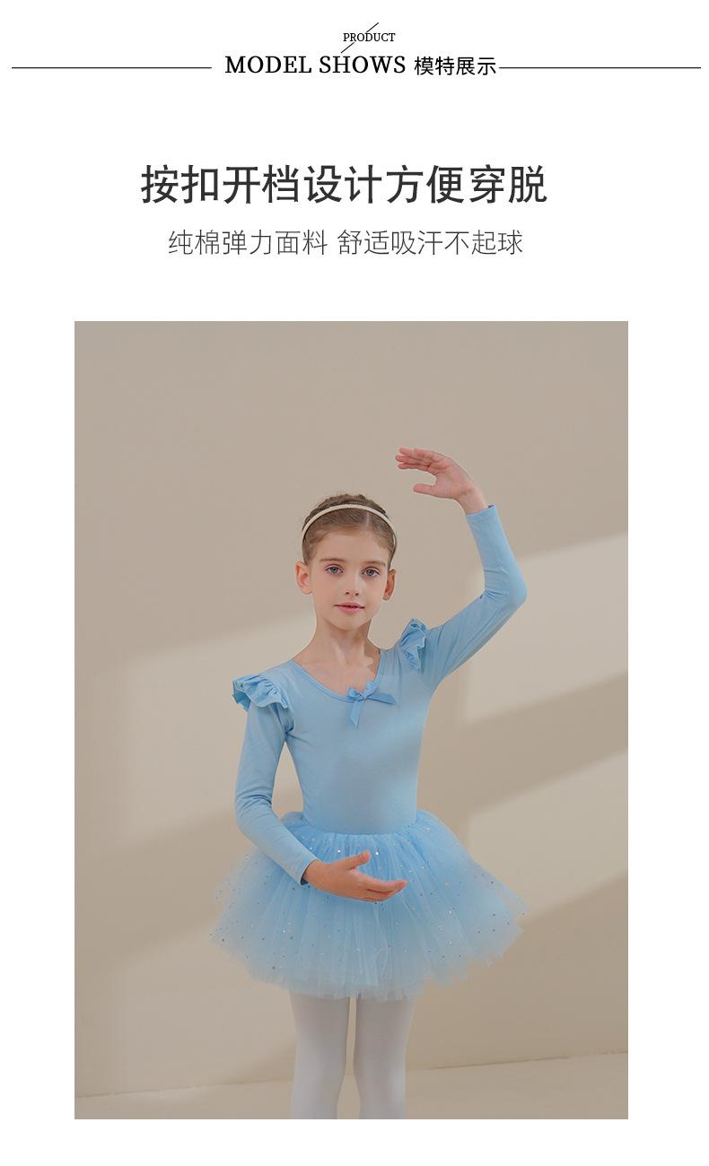Ropa de Danza para Niñas Manga Larga Algodón Puro Azul Ropa de Práctica para Niñas Vestido de Ballet para Niñas Pequeñas Ropa de Práctica de Danza China