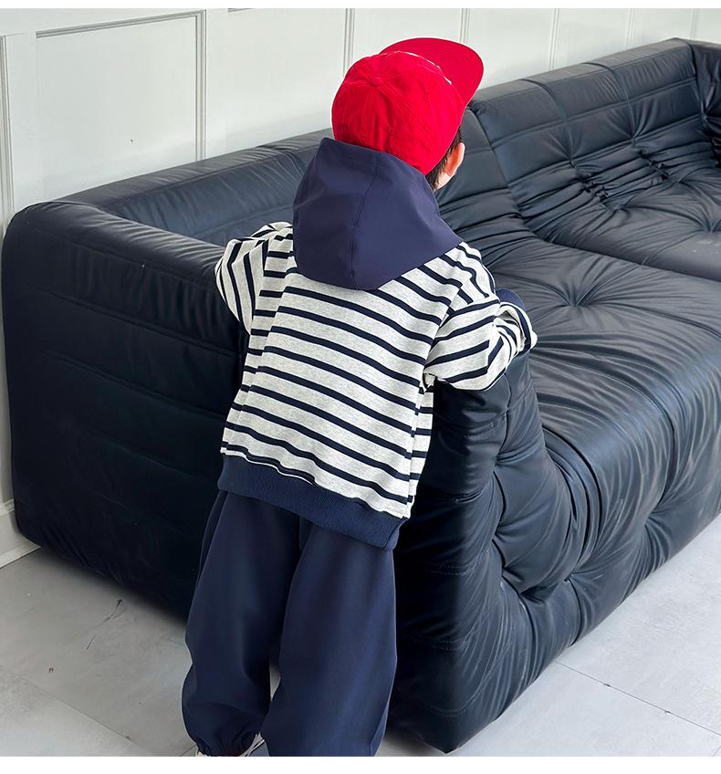 Sudadera con capucha de otoño Conjunto de manga larga para niños Ropa a rayas para niño 2025 Nuevo Conjunto casual de dos piezas para bebé a la moda