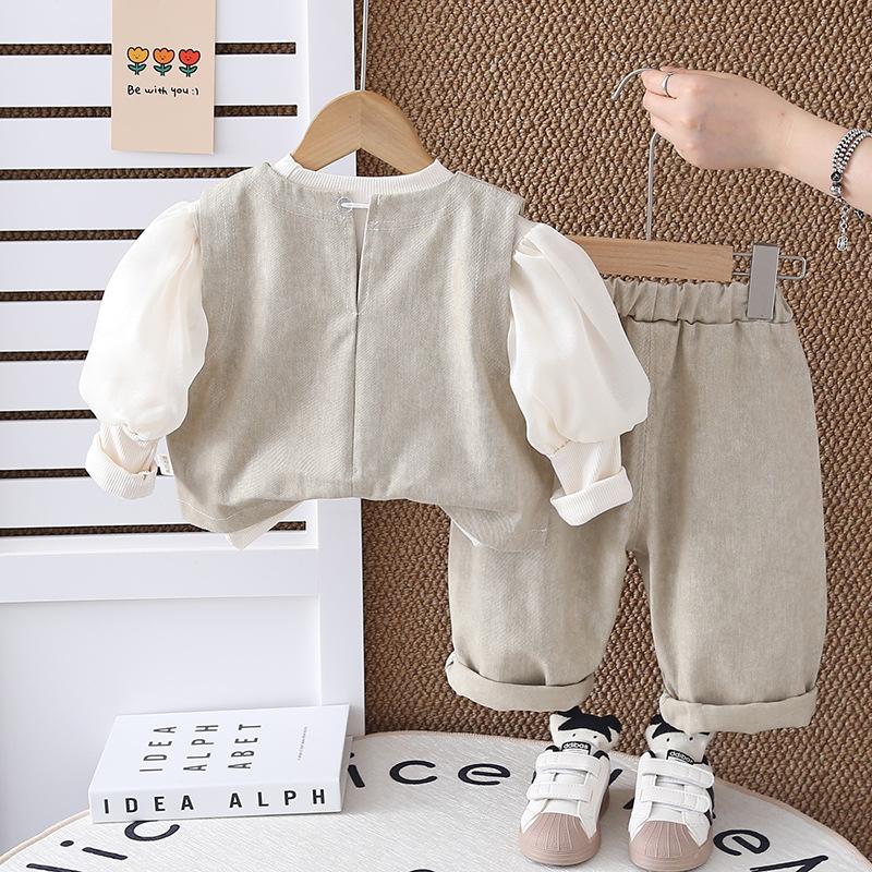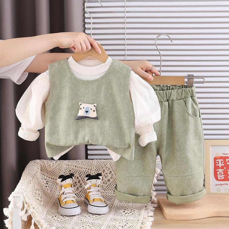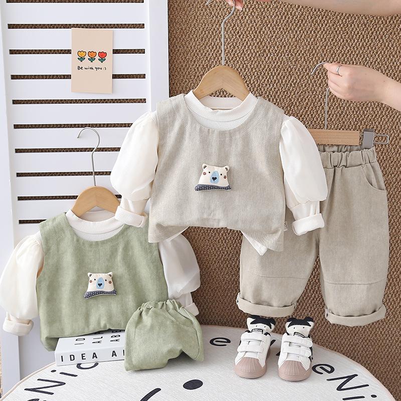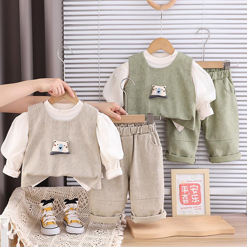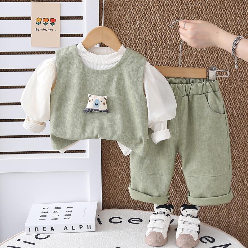 Little Bear Vest Three-Piece Set Green, Little Bear Vest Three-Piece Set Light Brown