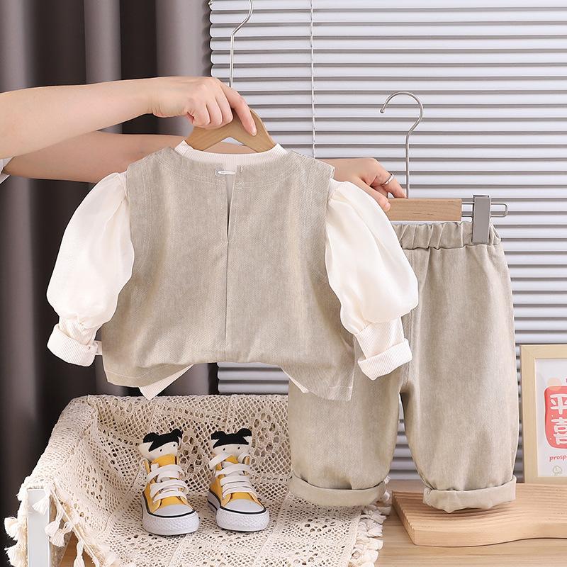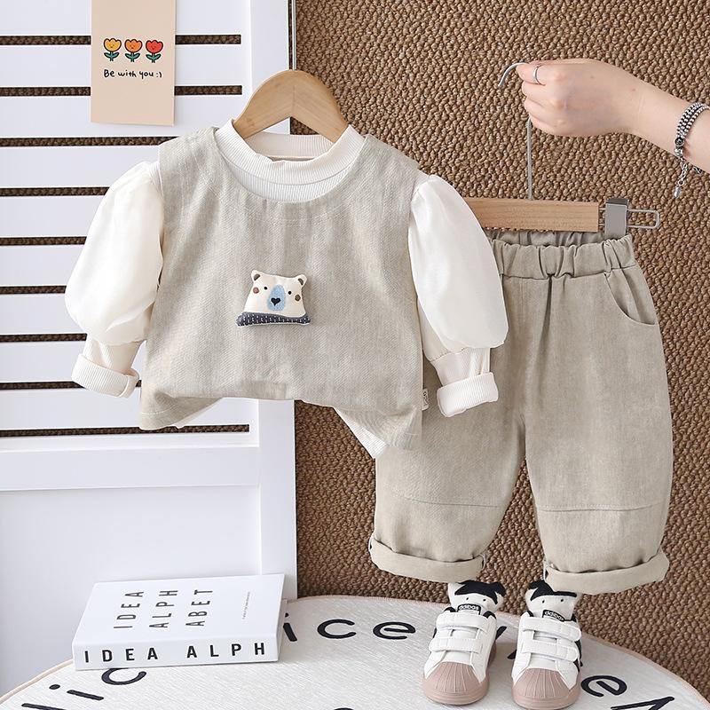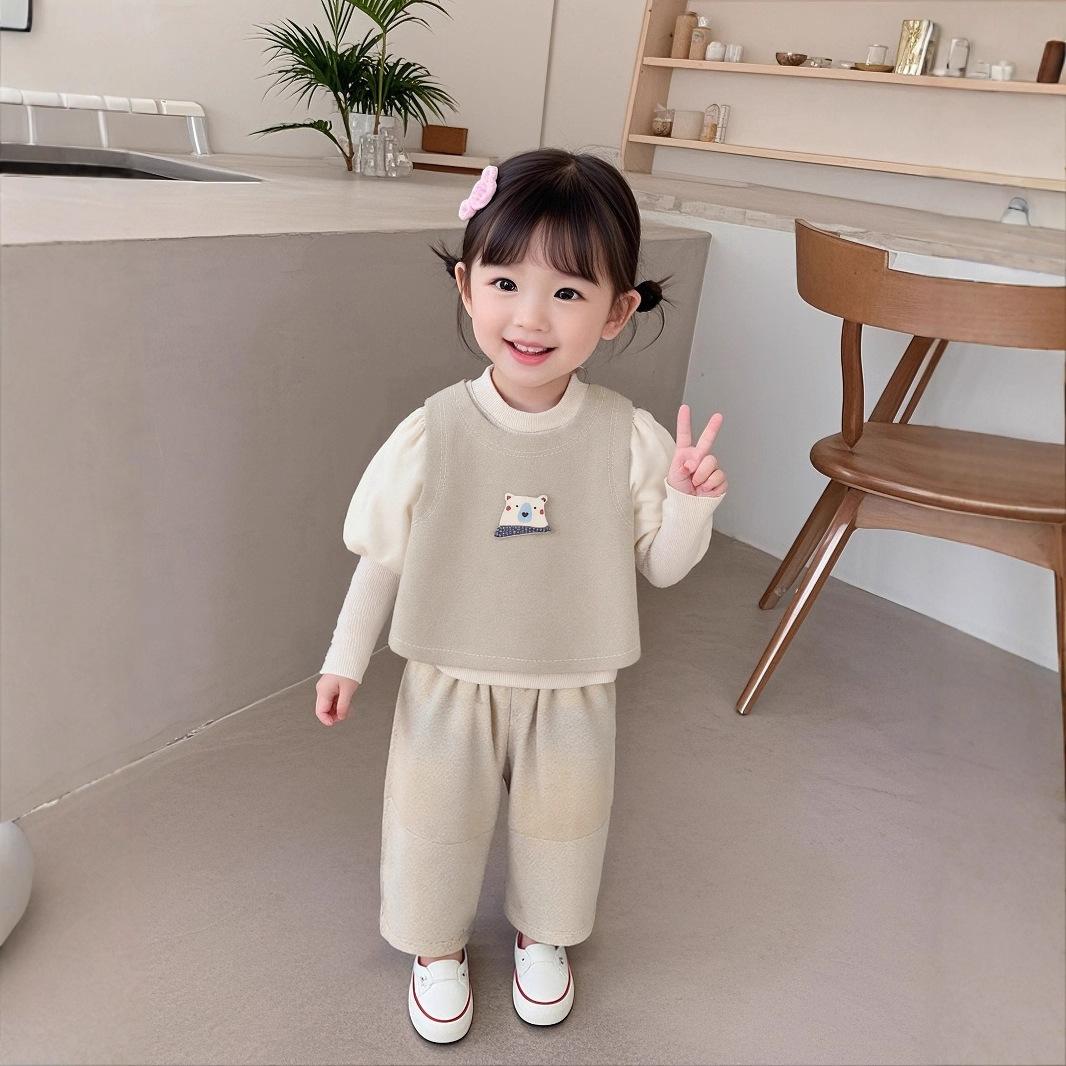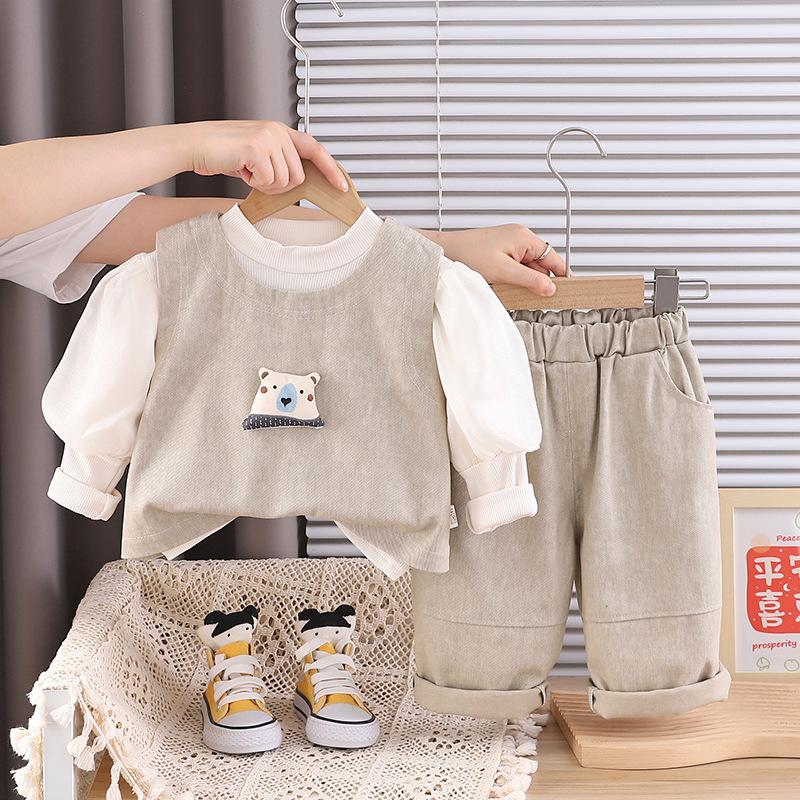 Conjunto de Primavera y Otoño para Niñas 2025 Nuevo Chaleco de Osito Casual Conjunto de Tres Piezas Ropa de Otoño de Moda para Niños Tendencia