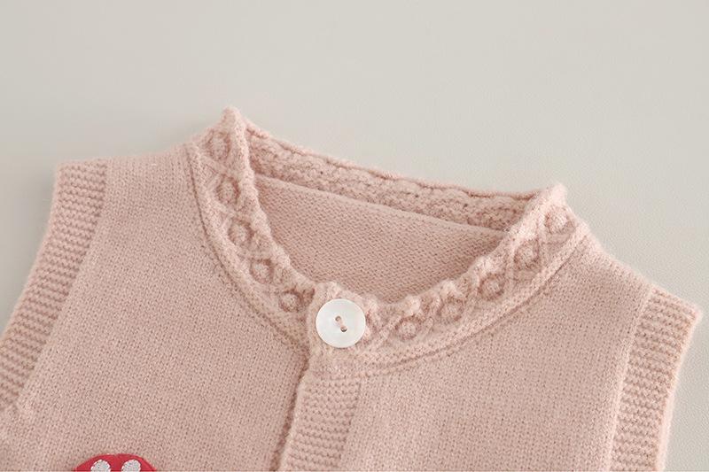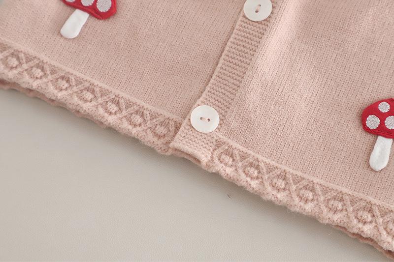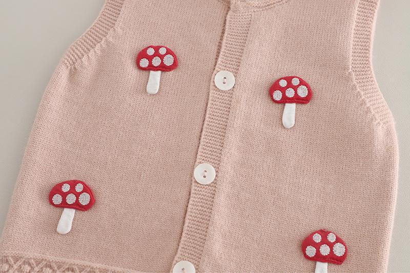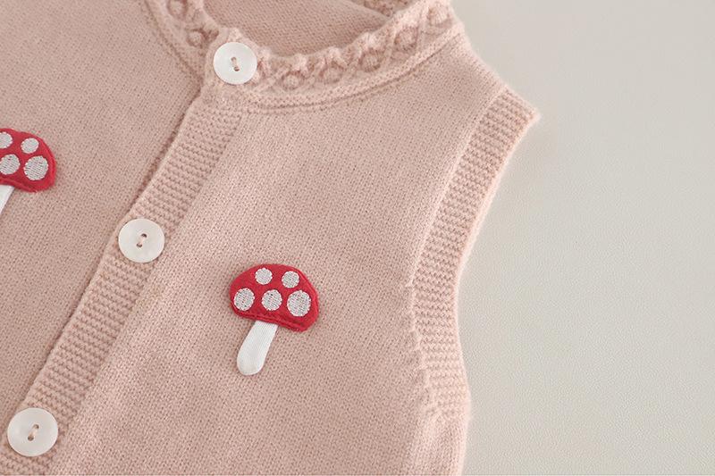 Pink Little Mushroom Vest Long Sleeve Three-Piece Set, Off-white little mushroom vest long-sleeved three-piece set