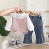 Conjunto para Niñas Otoño 2025 Nueva Moda Bebé de Dibujos Animados Chaleco Suéter Niño Pequeño Casual Otoño Conjunto de Tres Piezas