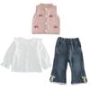 Pink Little Mushroom Vest Long Sleeve Three-Piece Set