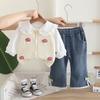 Off-white little mushroom vest long-sleeved three-piece set