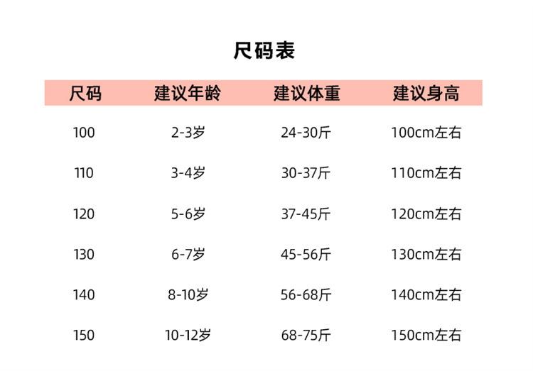 100cm, 110cm, 120cm, 130cm, 140cm, 150cm