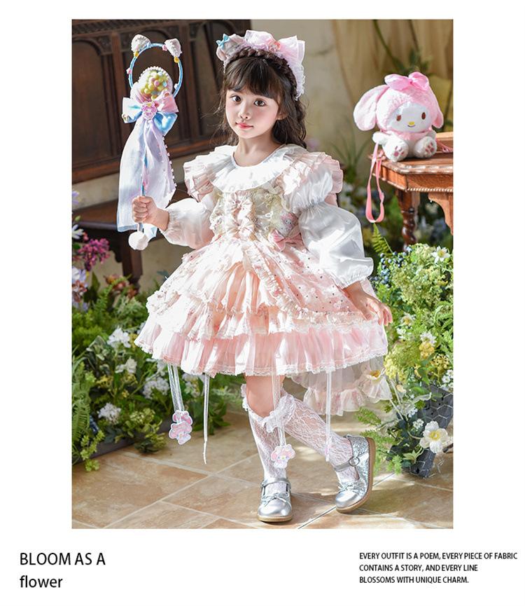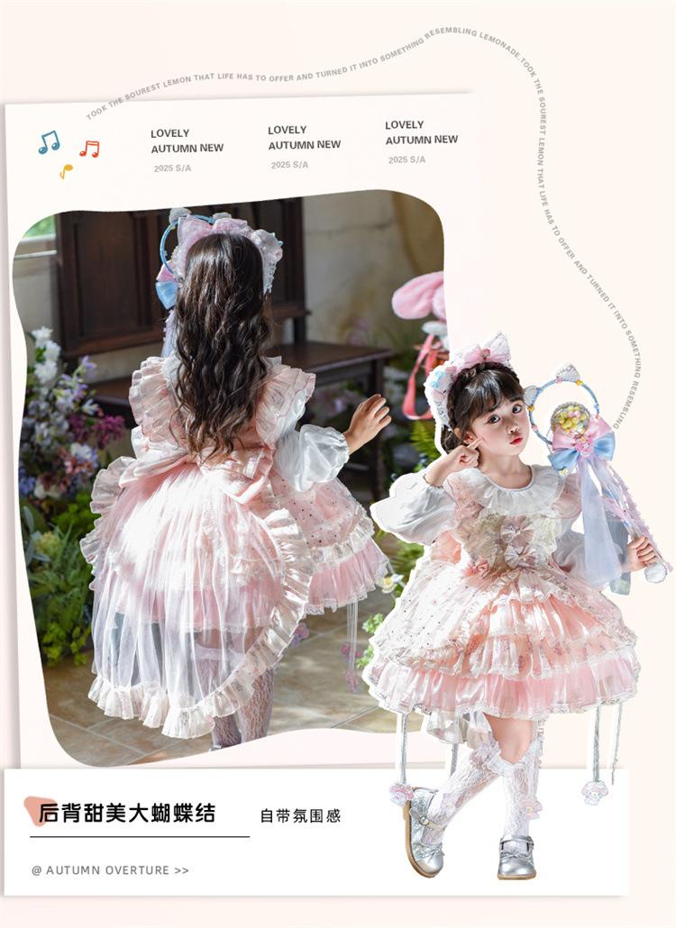 Vestido de princesa Lolita vestido de niña 2025 nuevo moderno infantil cuatro estaciones vestido de fiesta de cumpleaños de niña