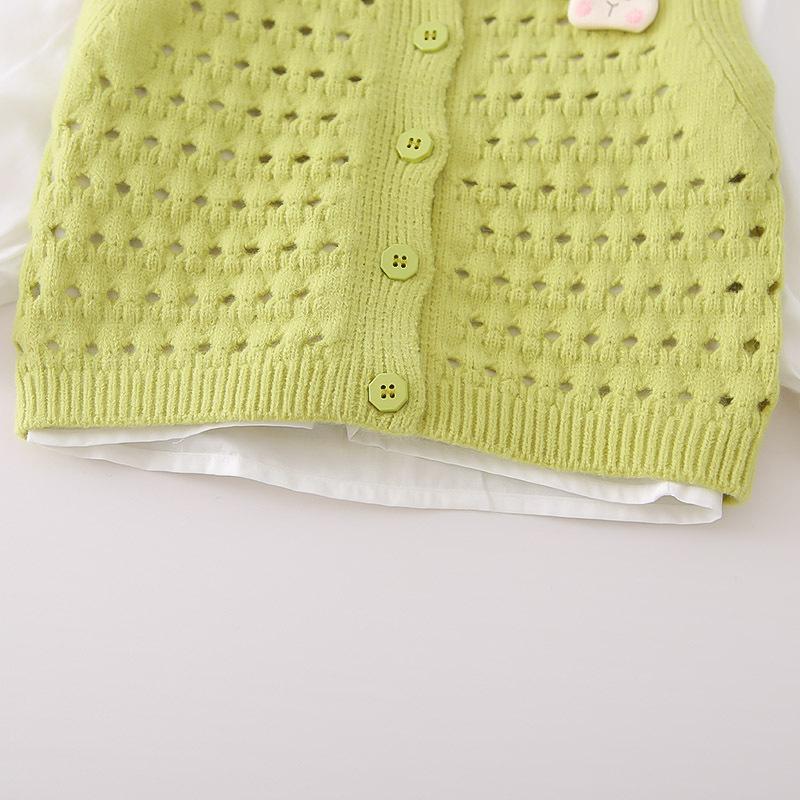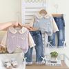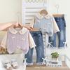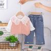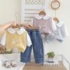 Conjunto de Otoño de Moda para Niñas Otoño 2025 Nuevo Producto Bebé Niña Dulce Suéter con Cuello Bordado de Manga Larga Chaleco Conjunto de Tres Piezas