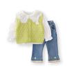 Long Sleeve Embroidered Collar Sweater Vest Three-Piece Set Green, Long Sleeve Embroidered Collar Sweater Vest...