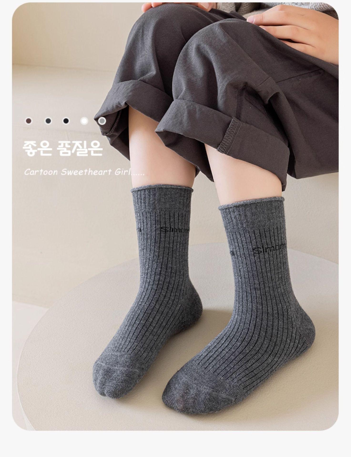 Estilo Primavera y Otoño Calcetines Media Pantorrilla para Niños y Niñas Estudiante Deportes Negro Blanco Gris Calcetines con Letras Modernos Calcetines para Niños Nuevos Calcetines de Algodón al por Mayor