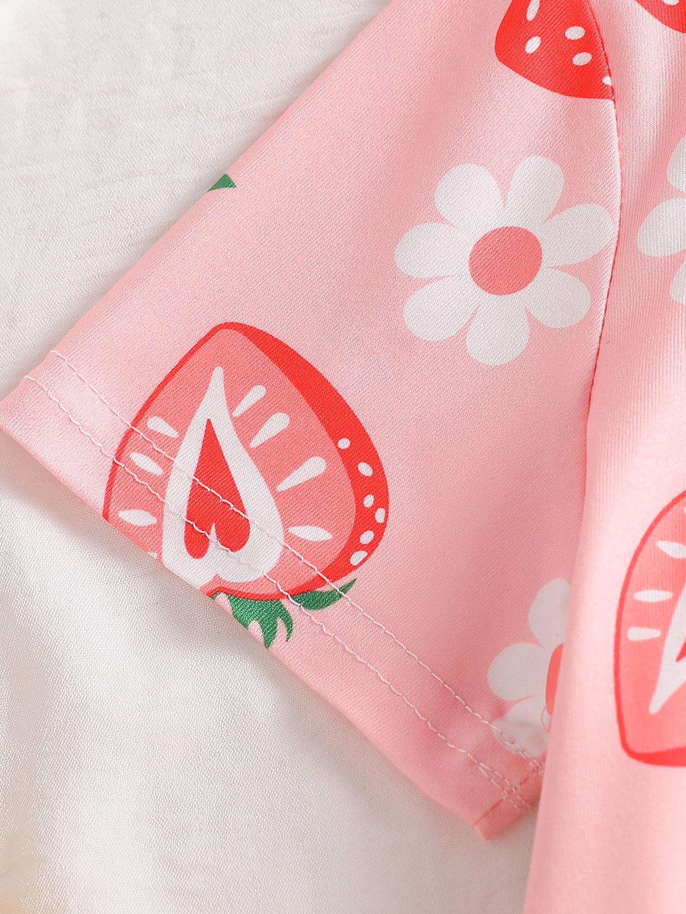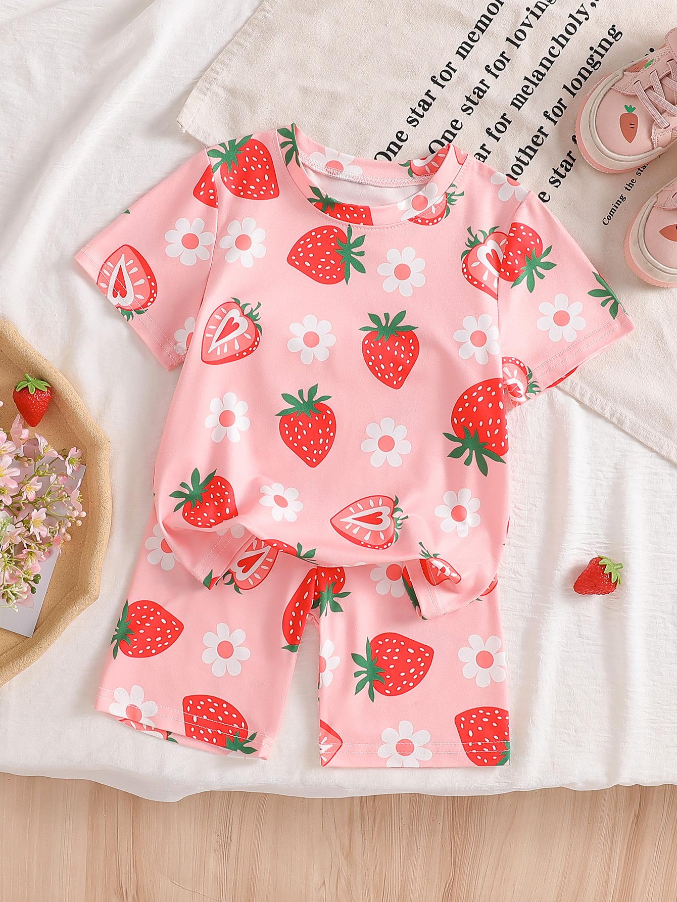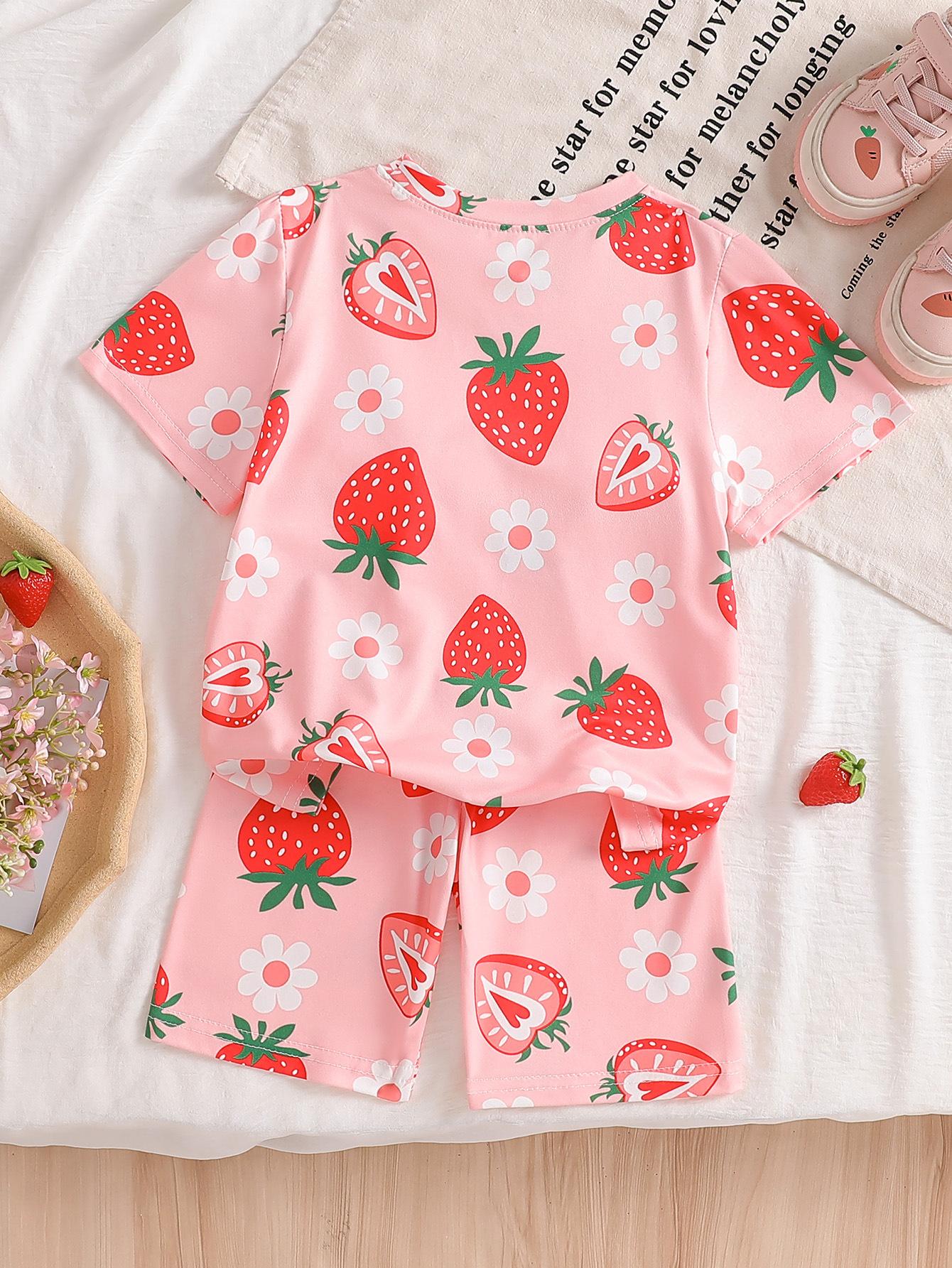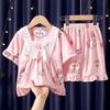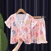 Pijamas de Verano de Manga Corta para Niña, Talla Mediana y Grande, Traje para Aire Acondicionado Fino con Dibujos Animados, Conjunto de Ropa de Casa para Bebé Niña