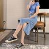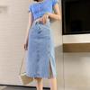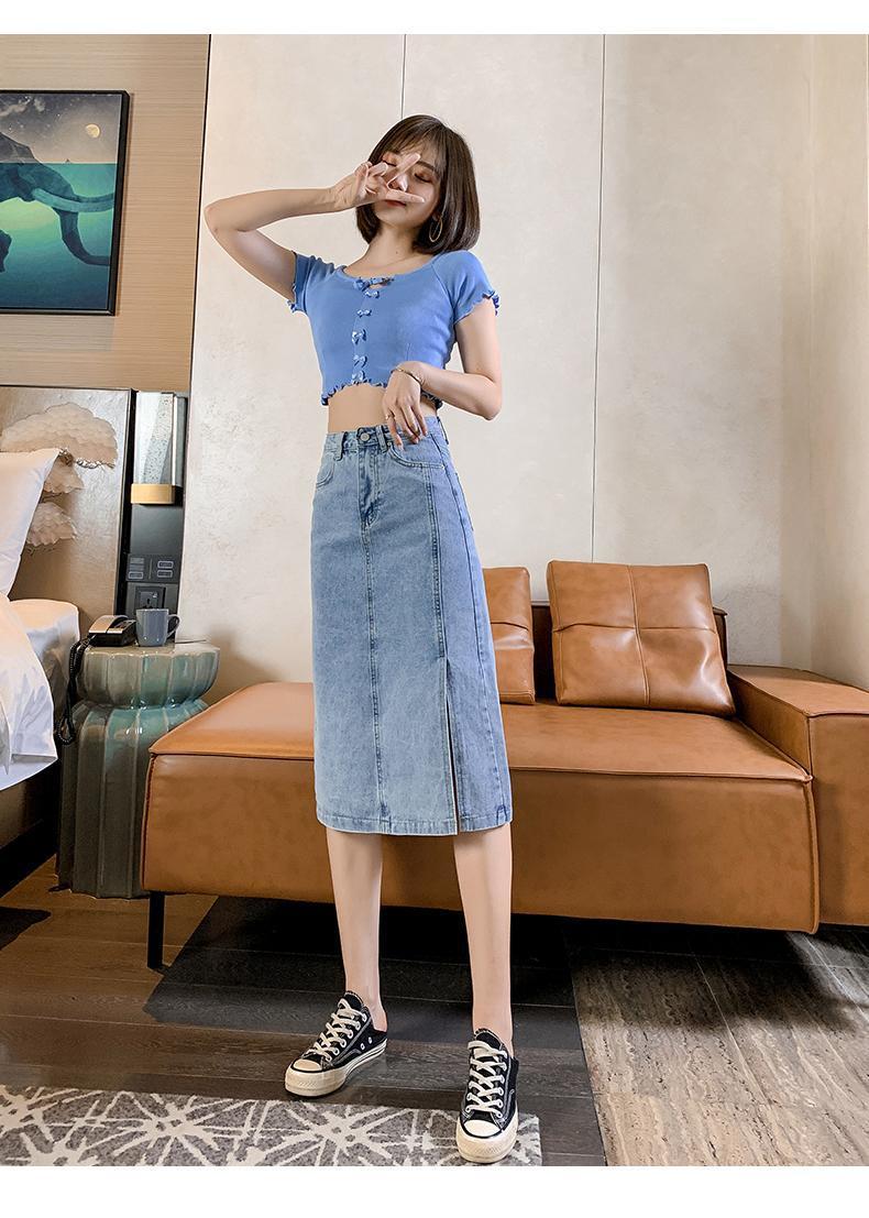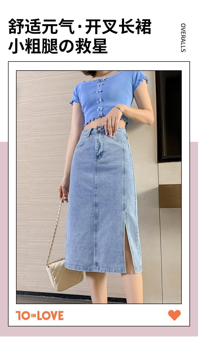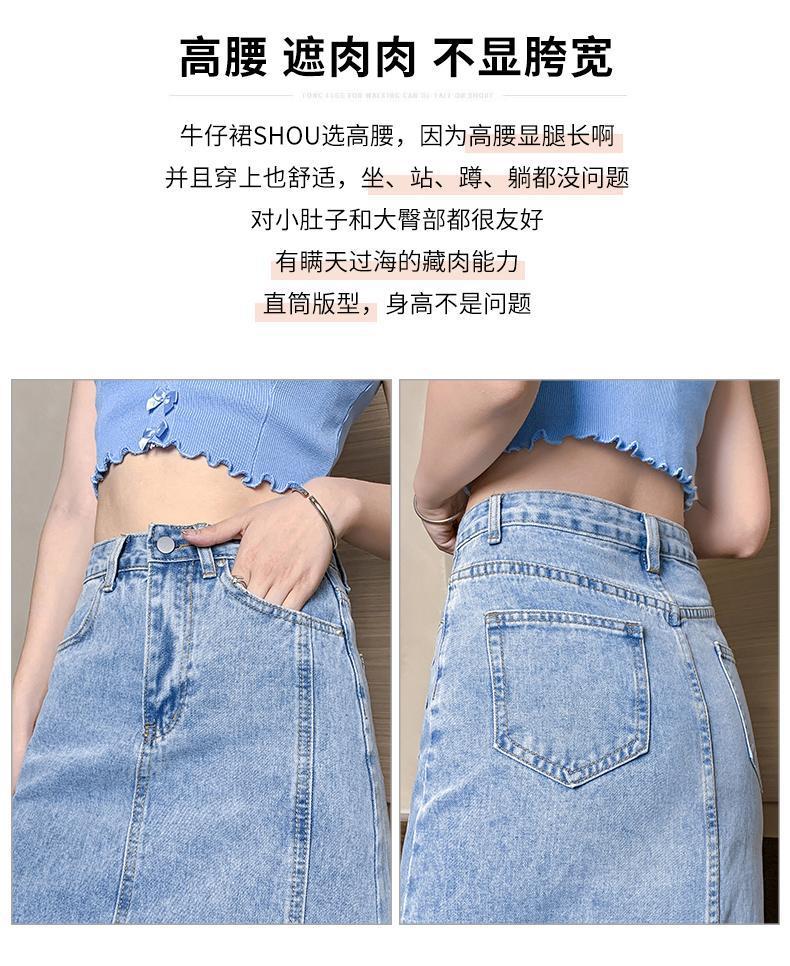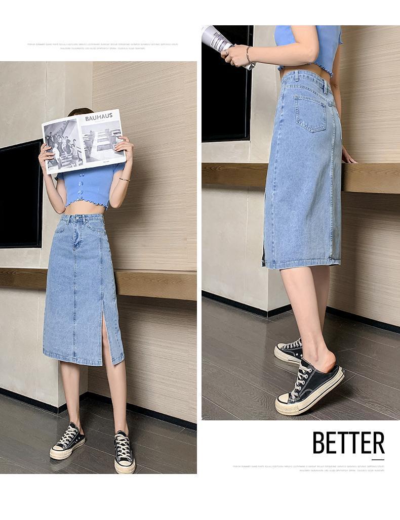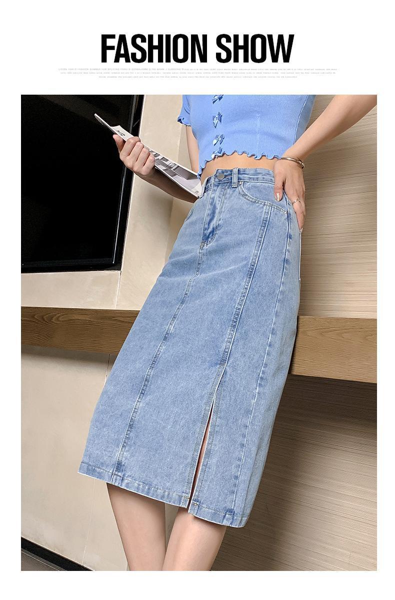Compra Falda Corta de Mezclilla con Abertura para Mujer 2024 Primavera y Verano Nueva Aspecto Adelgazante de Cintura Alta Versátil Cubre Caderas Largo Medio Falda A-line al por mayor en Joom.pro