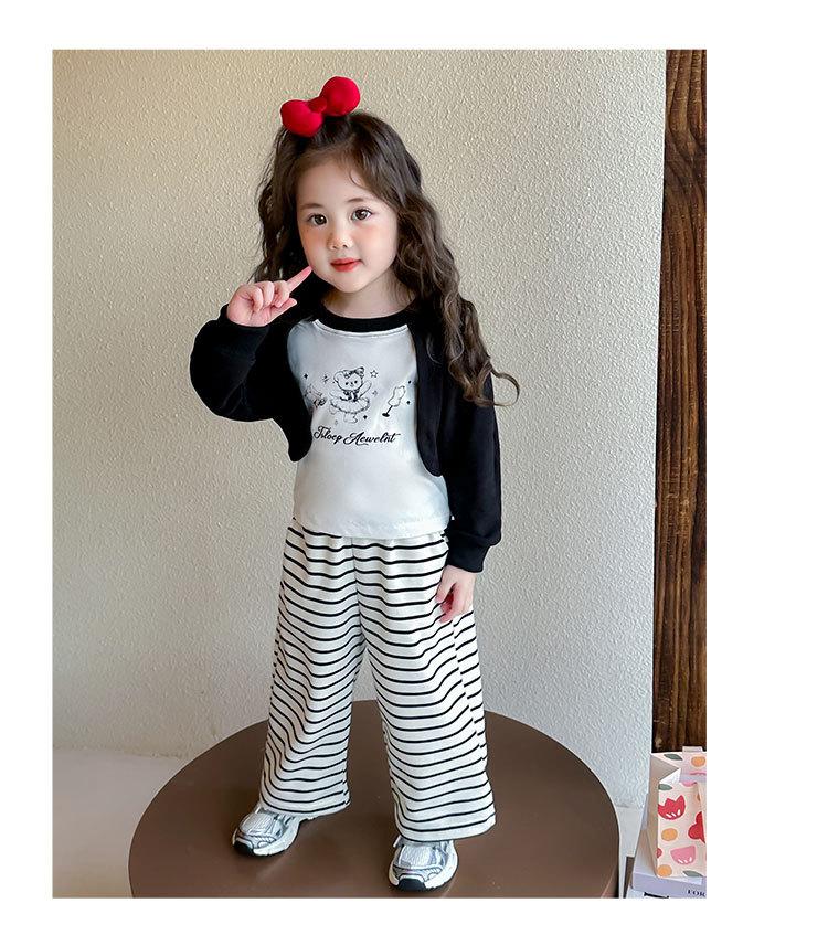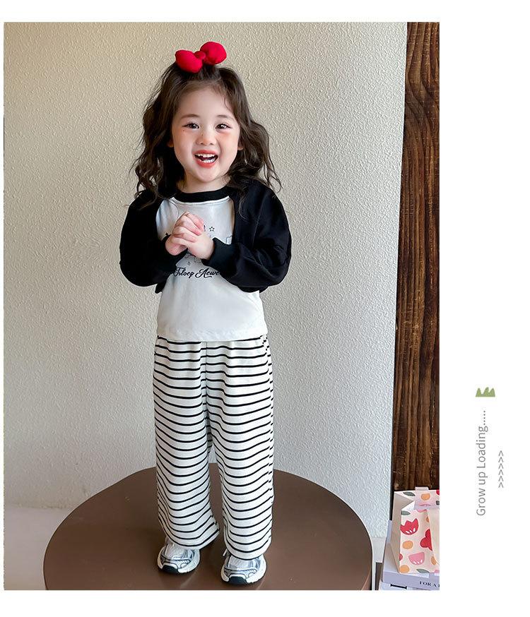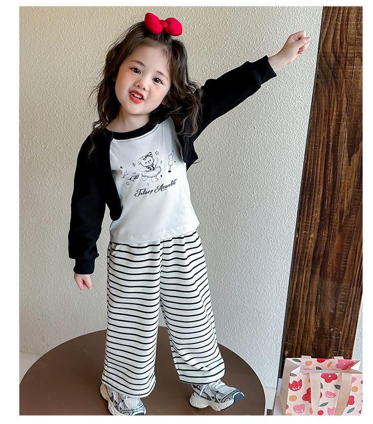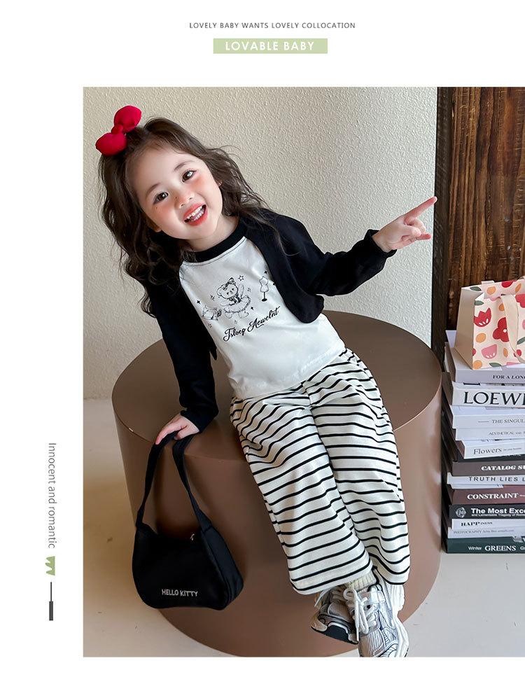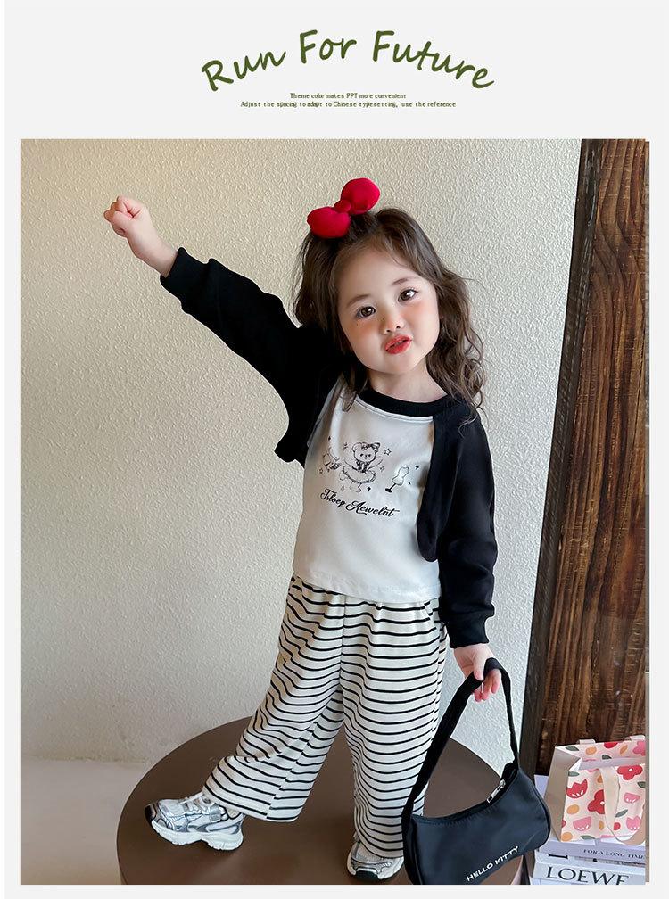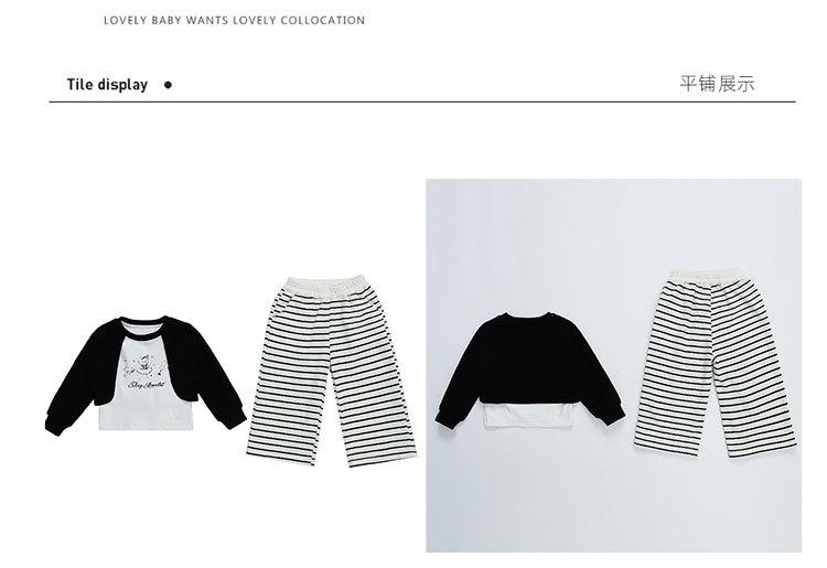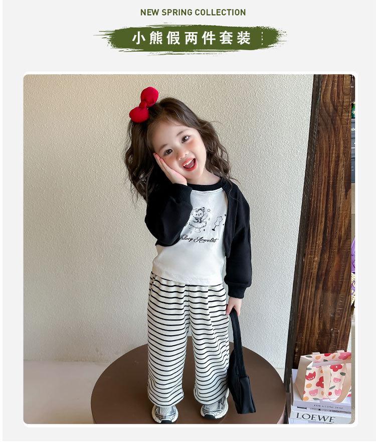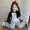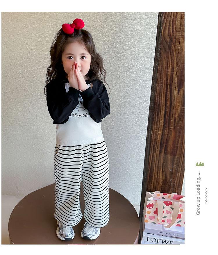 Conjunto de Top de Dos Piezas Falso para Niñas con Pantalones Rayados 2025 Nuevo Otoño Moda Infantil para Bebé Capa Base Estilo Casual
