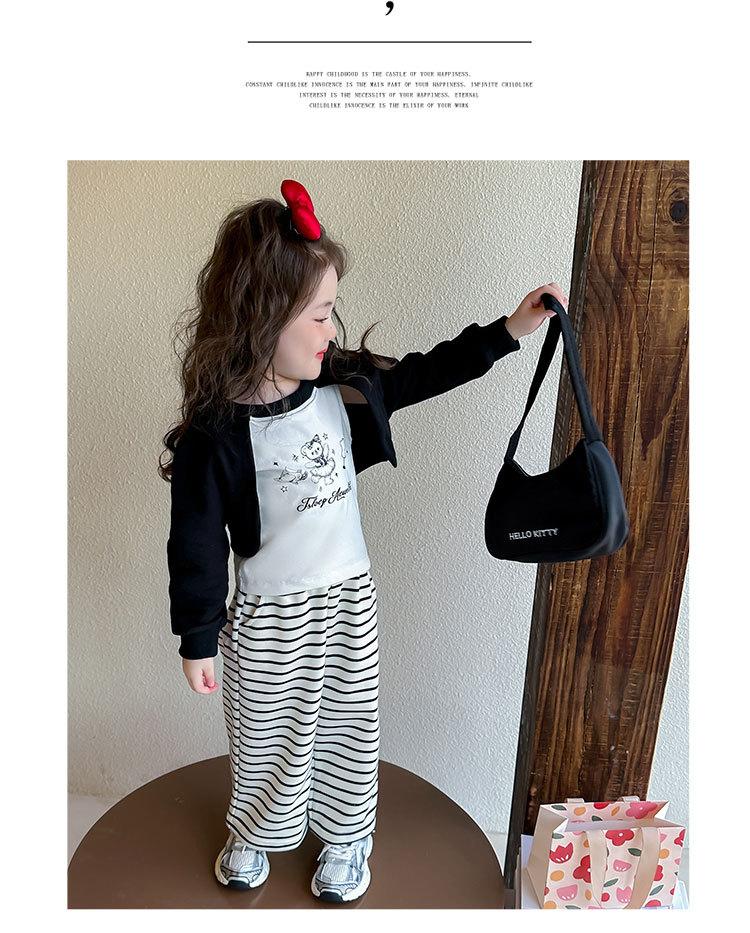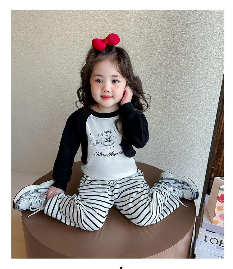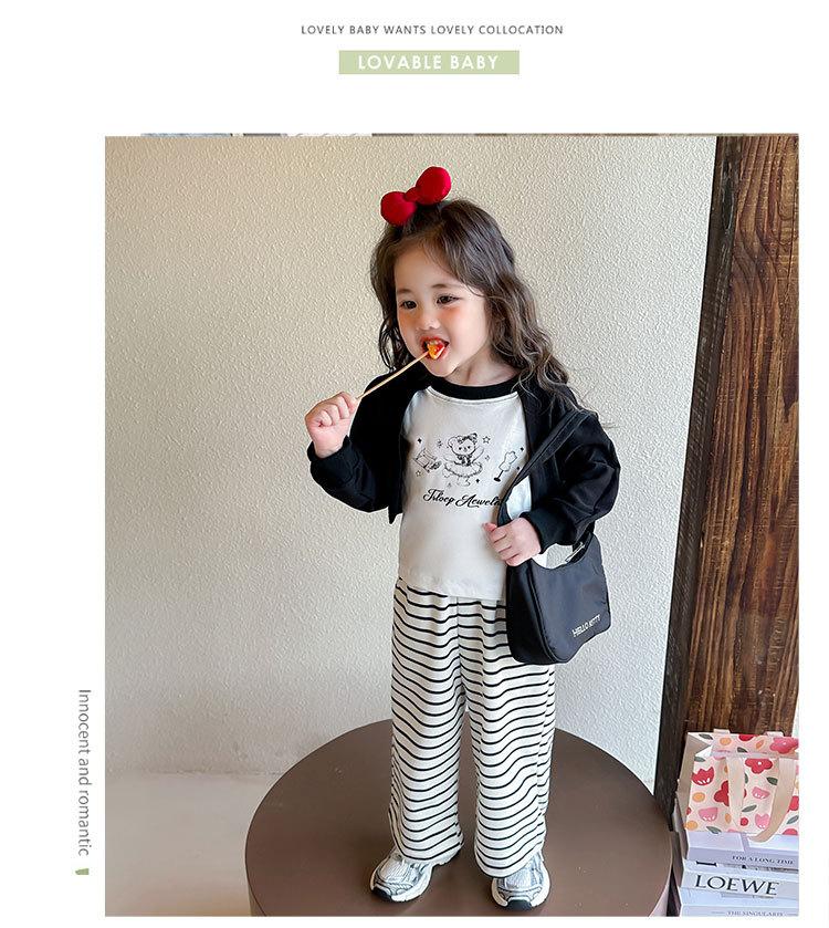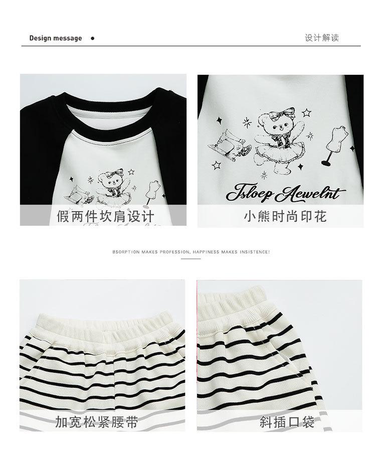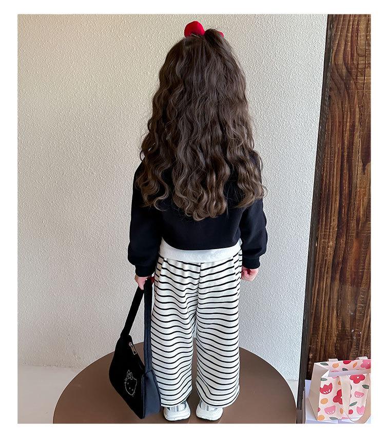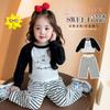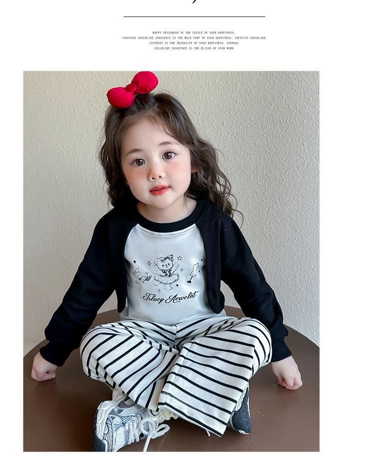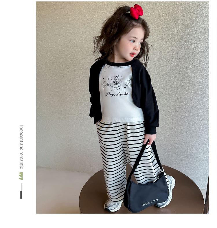 Conjunto de Top de Dos Piezas Falso para Niñas con Pantalones Rayados 2025 Nuevo Otoño Moda Infantil para Bebé Capa Base Estilo Casual
