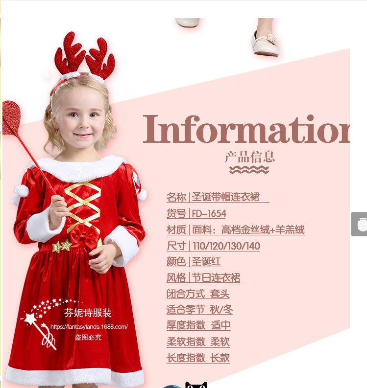 Ropa Navideña Nueva para Niños Disfraz de Actuación Navideña para Niñas Vestido Navideño Disfraz Lindo de Actuación Escénica para Niñas