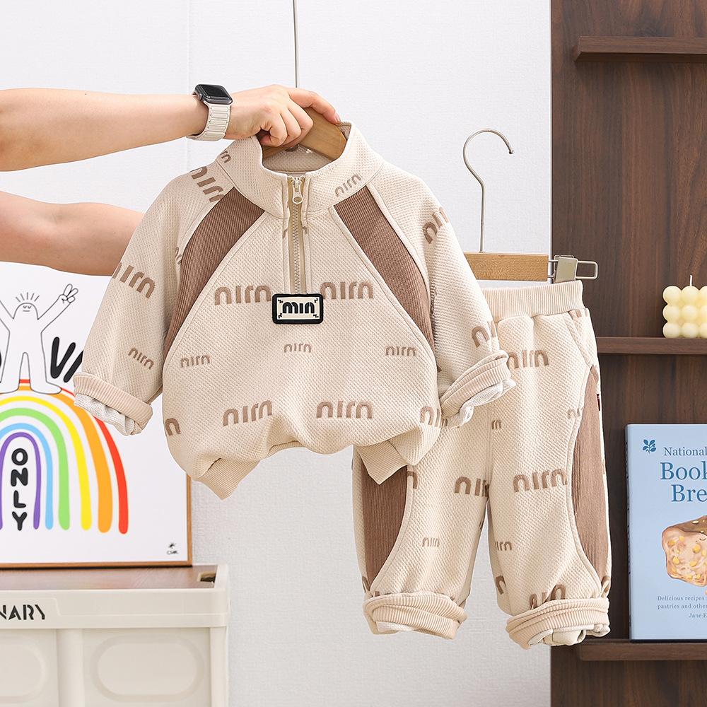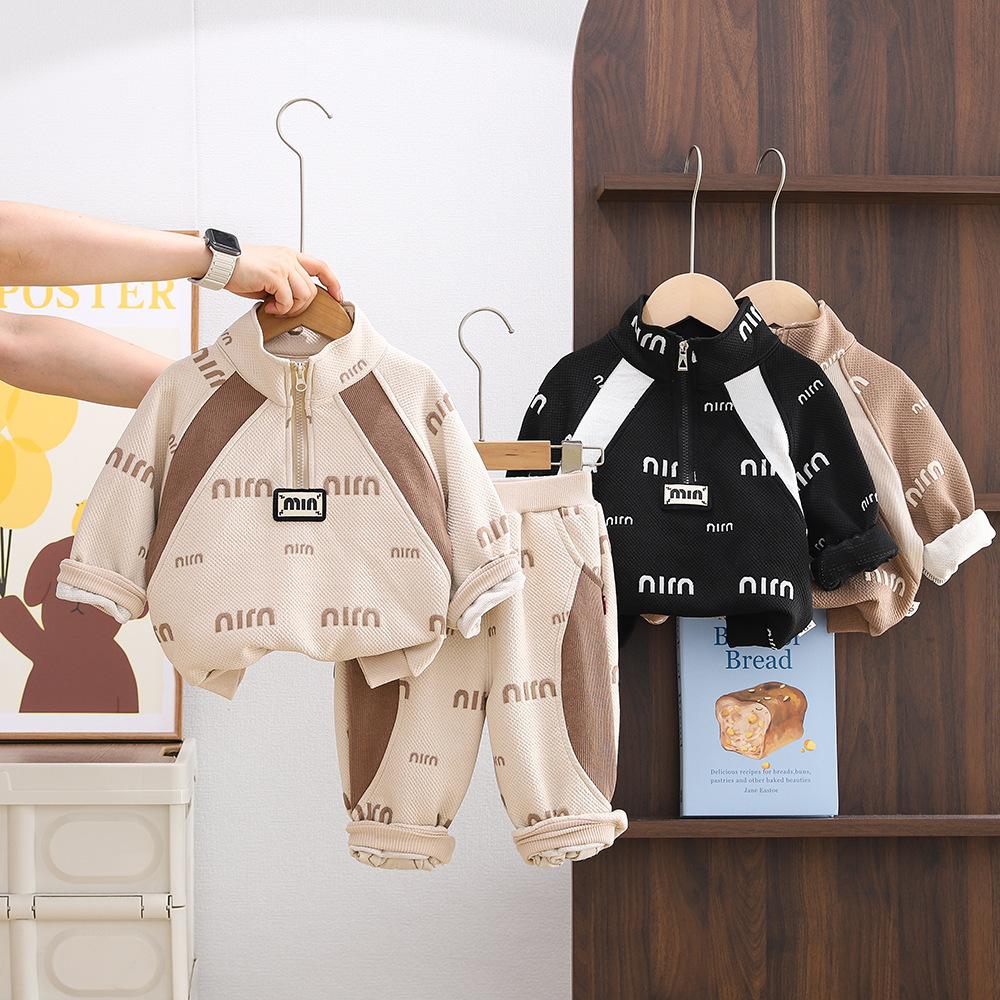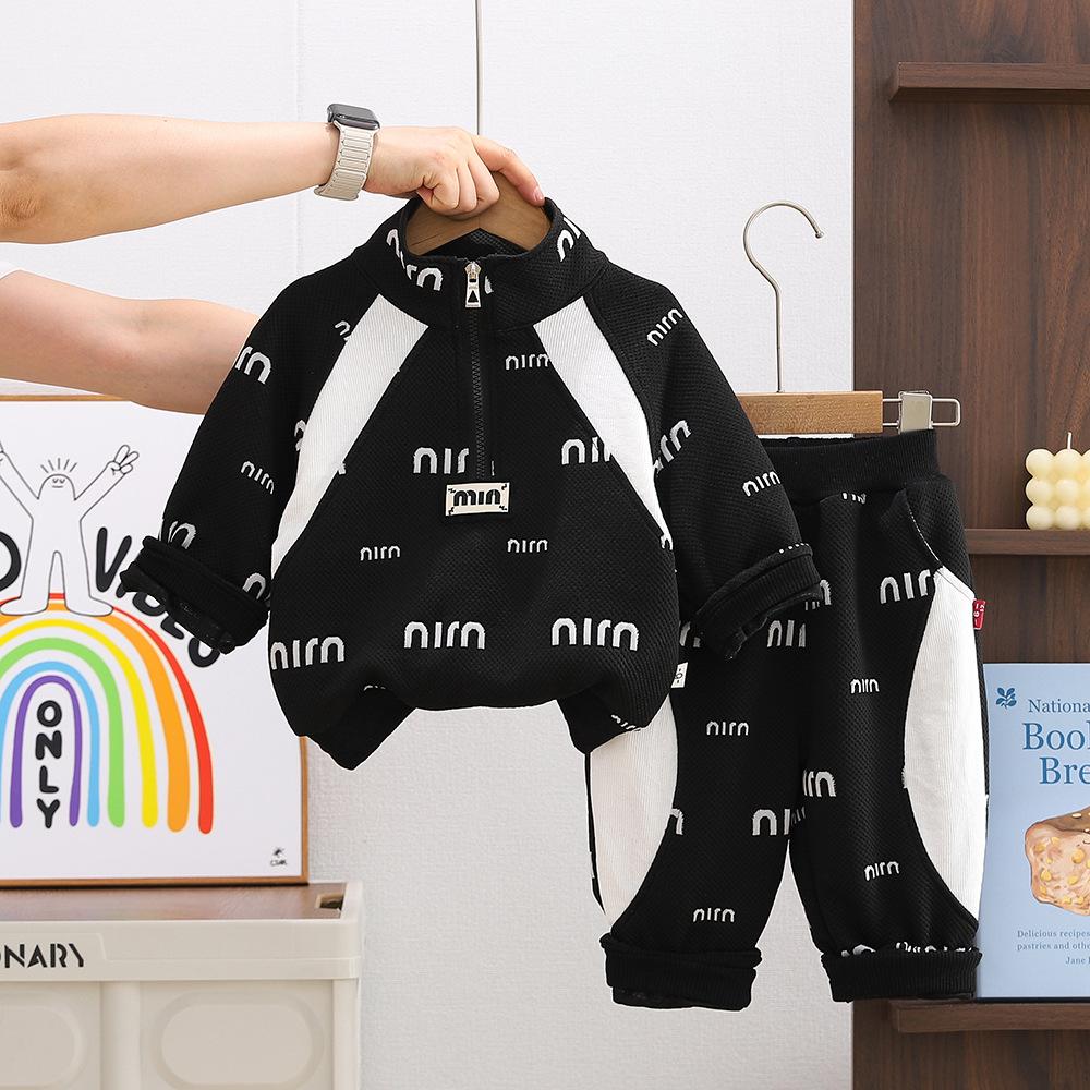 2025 Nueva Moda para Niños Pequeños y Medianos Primavera y Otoño Bloque de Color Versión Inglesa Cierre Bebé Deporte Conjunto de Dos Piezas