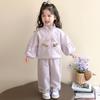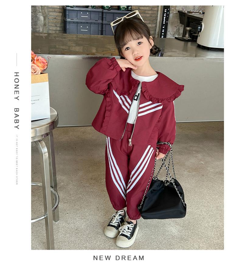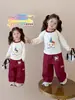 Conjunto de Primavera y Otoño para Niñas con Cuello Vuelto 2025 Nuevo Estilo Coreano Conjunto de Dos Piezas con Cintas para Niñas Ropa de Otoño para Bebé Niña