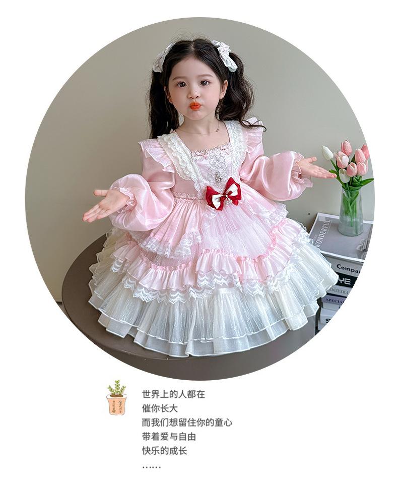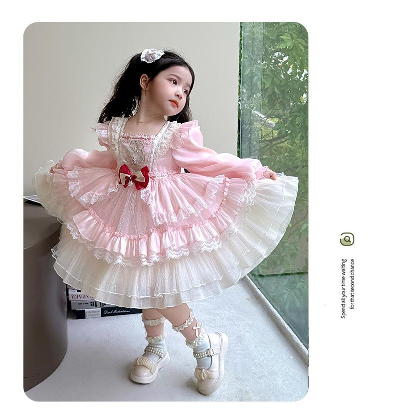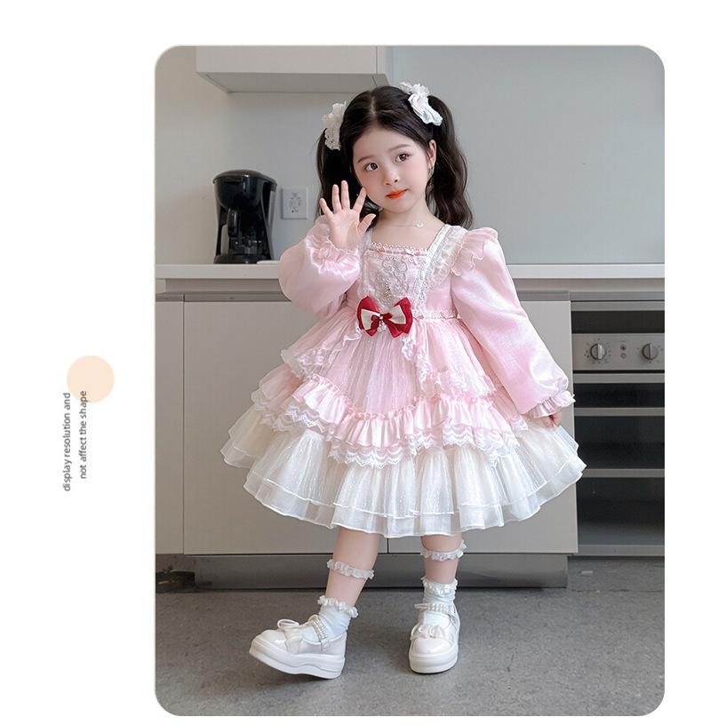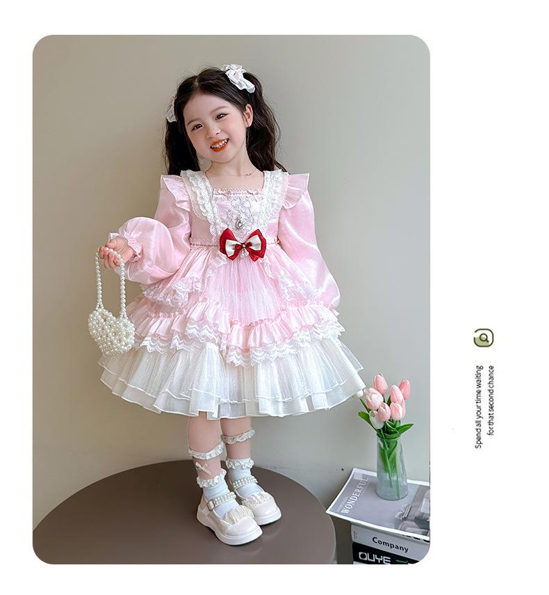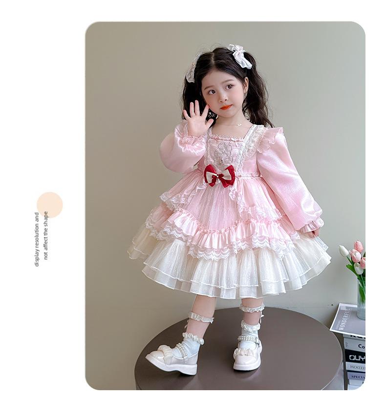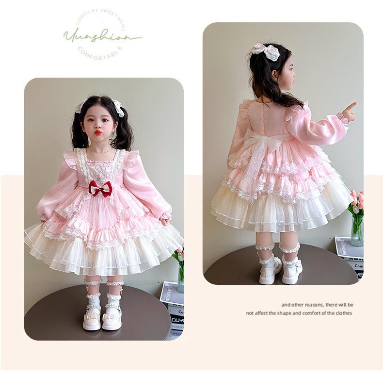 Vestido de Niña Otoño 2025 Nuevo Estilo Vestido de Princesa Rosa de Cumpleaños para Niños Niña Otoño Primavera Vestido Lolita