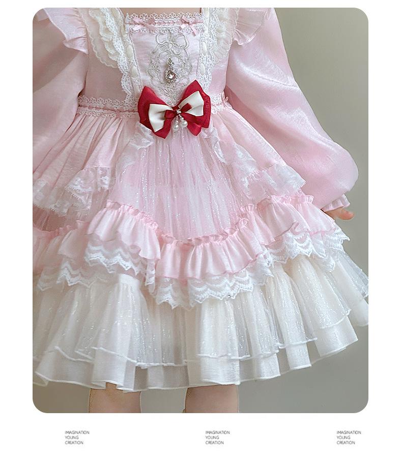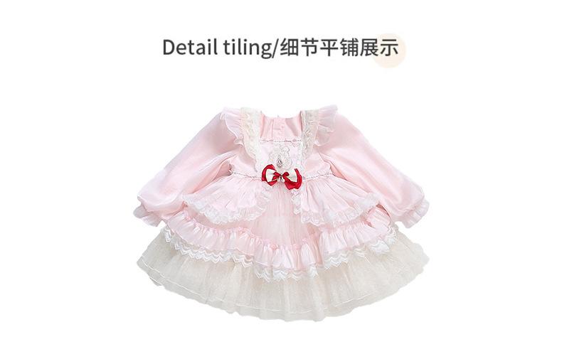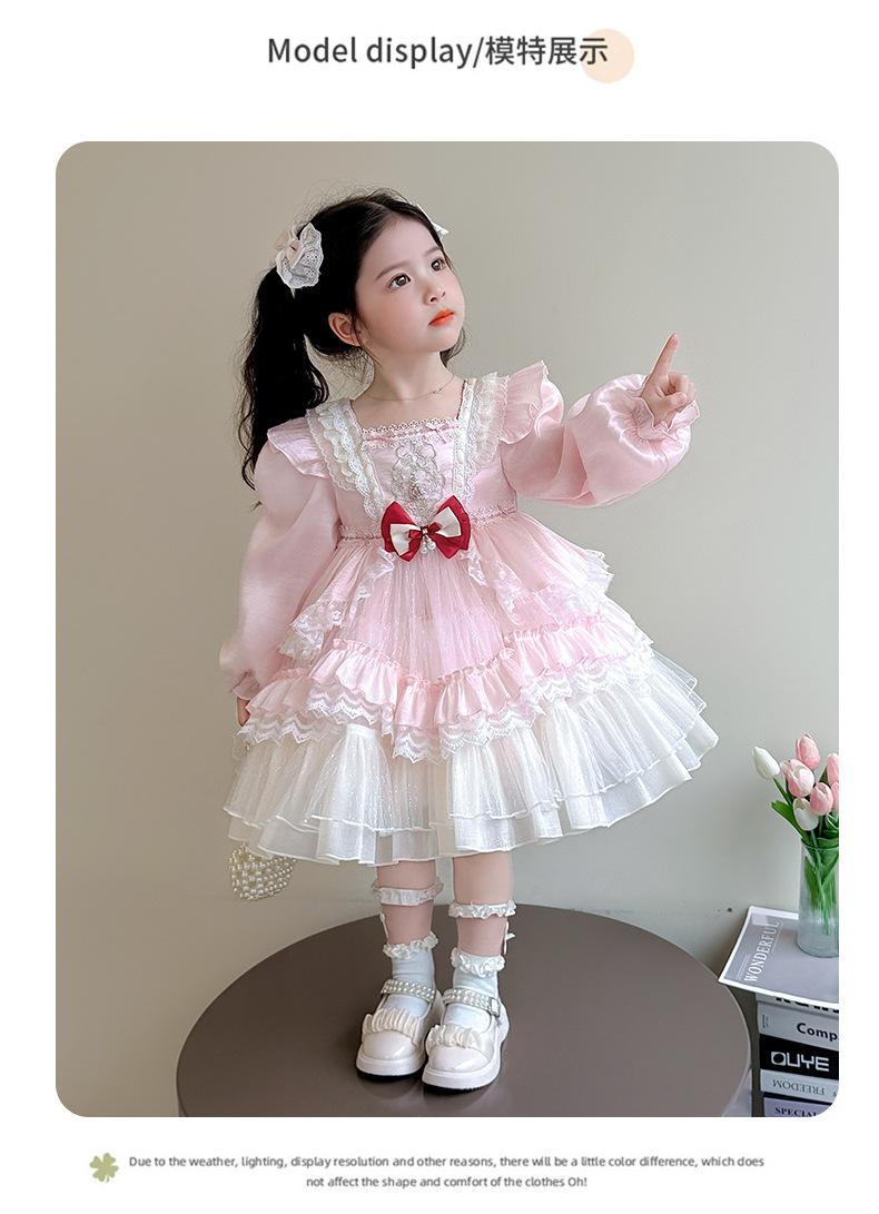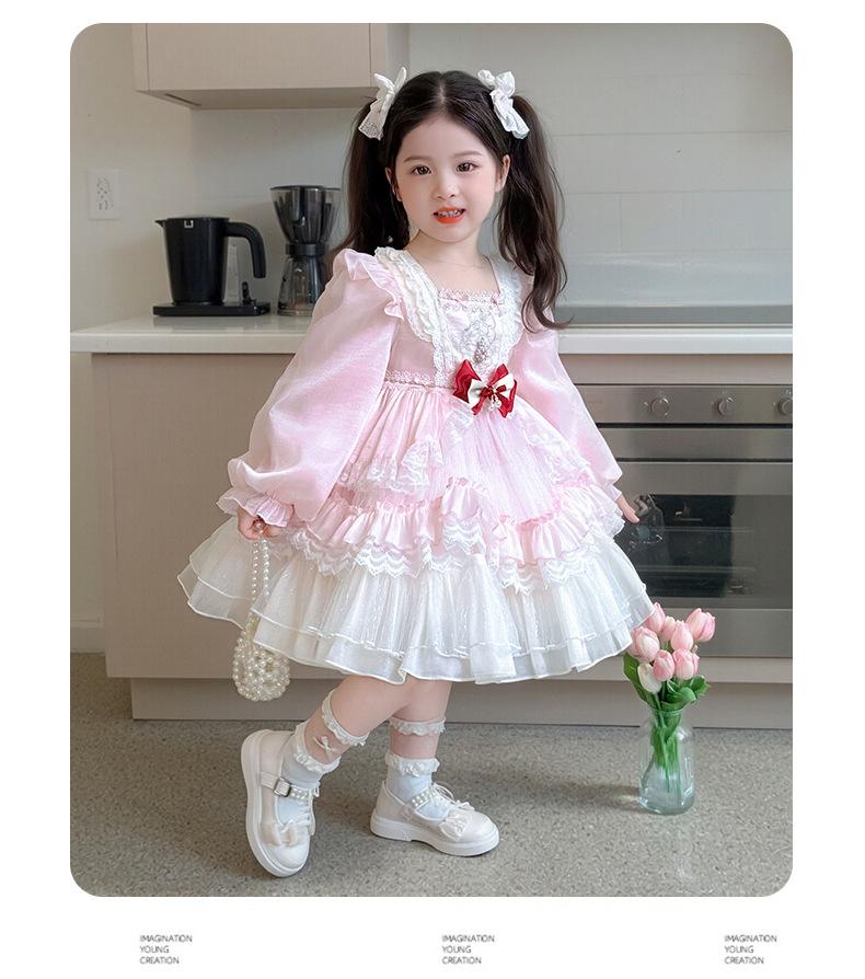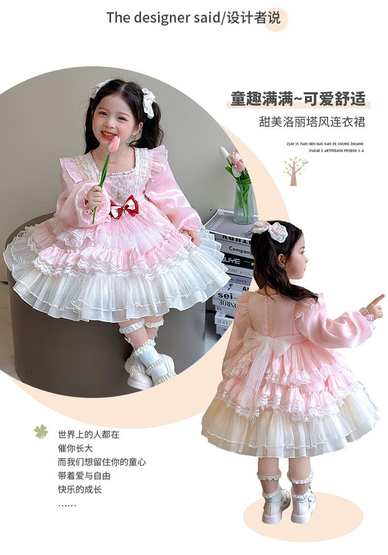 Vestido de Niña Otoño 2025 Nuevo Estilo Vestido de Princesa Rosa de Cumpleaños para Niños Niña Otoño Primavera Vestido Lolita
