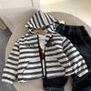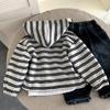 Chaqueta de Otoño para Niño 2025 Nuevo Estilo Pequeña y Mediana Cárdigan para Niños con Capucha Sudadera Rayada Ropa de Otoño para Bebé Niña Guapo Moderno