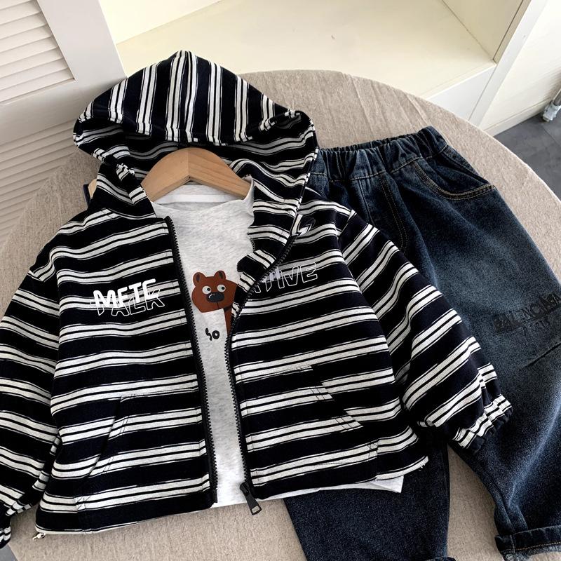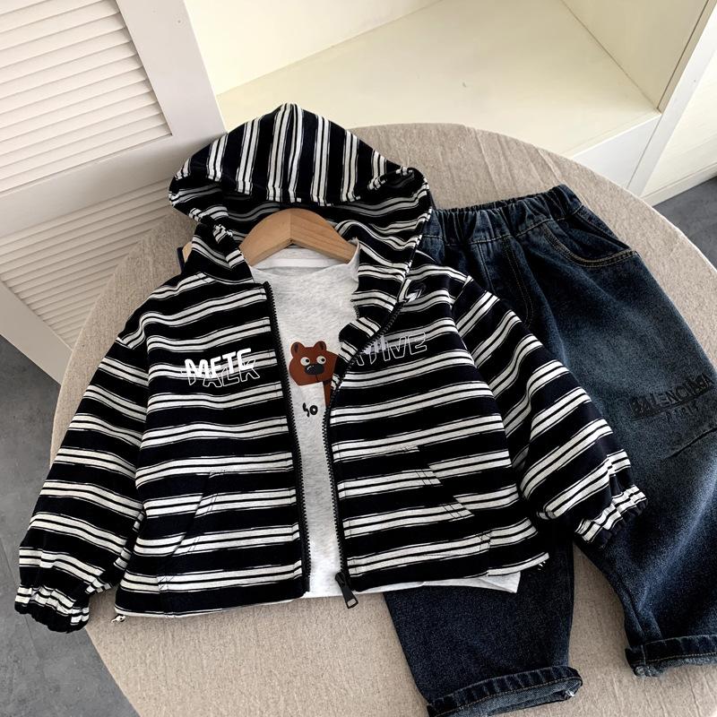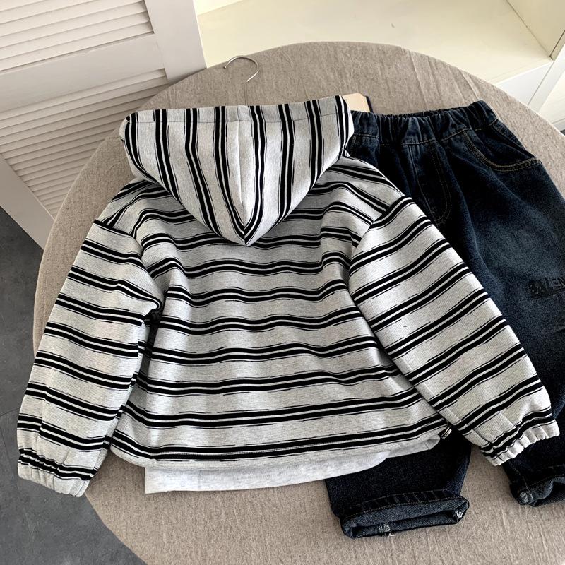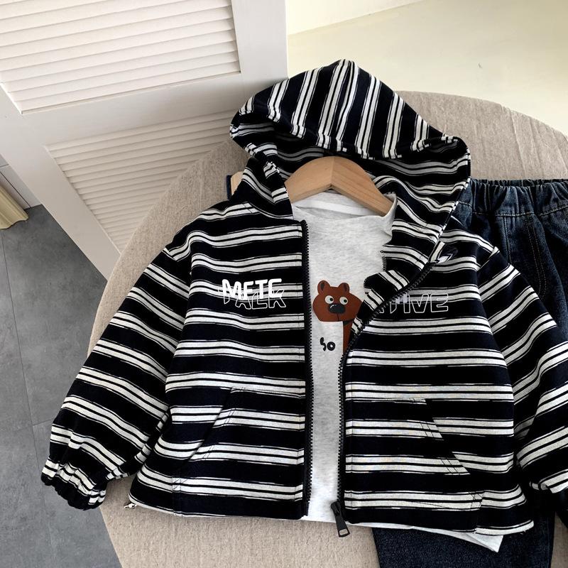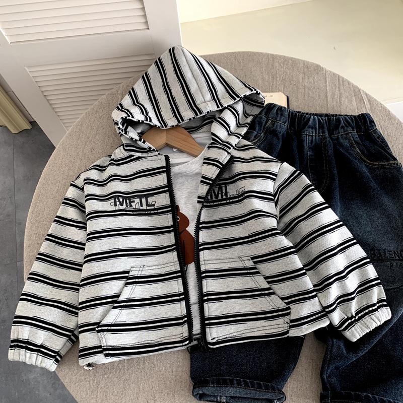 Compra Chaqueta de Otoño para Niño 2025 Nuevo Estilo Pequeña y Mediana Cárdigan para Niños con Capucha Sudadera Rayada Ropa de Otoño para Bebé Niña Guapo Moderno al por mayor en Joom.pro