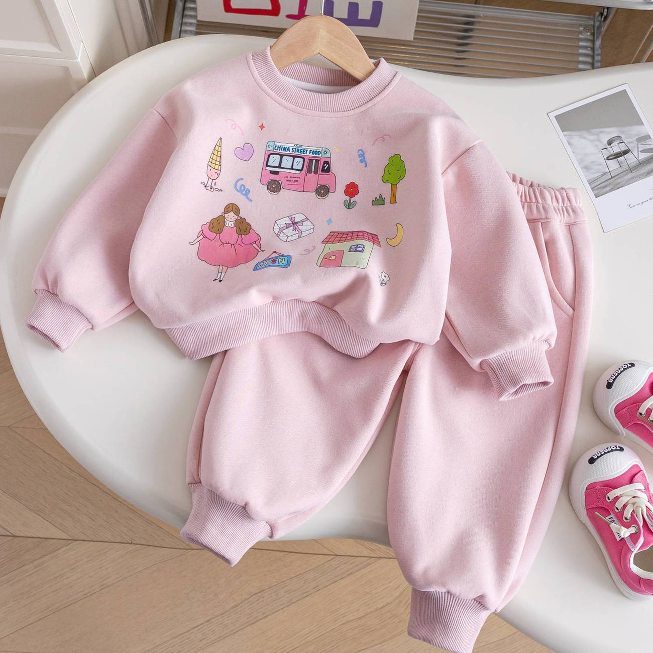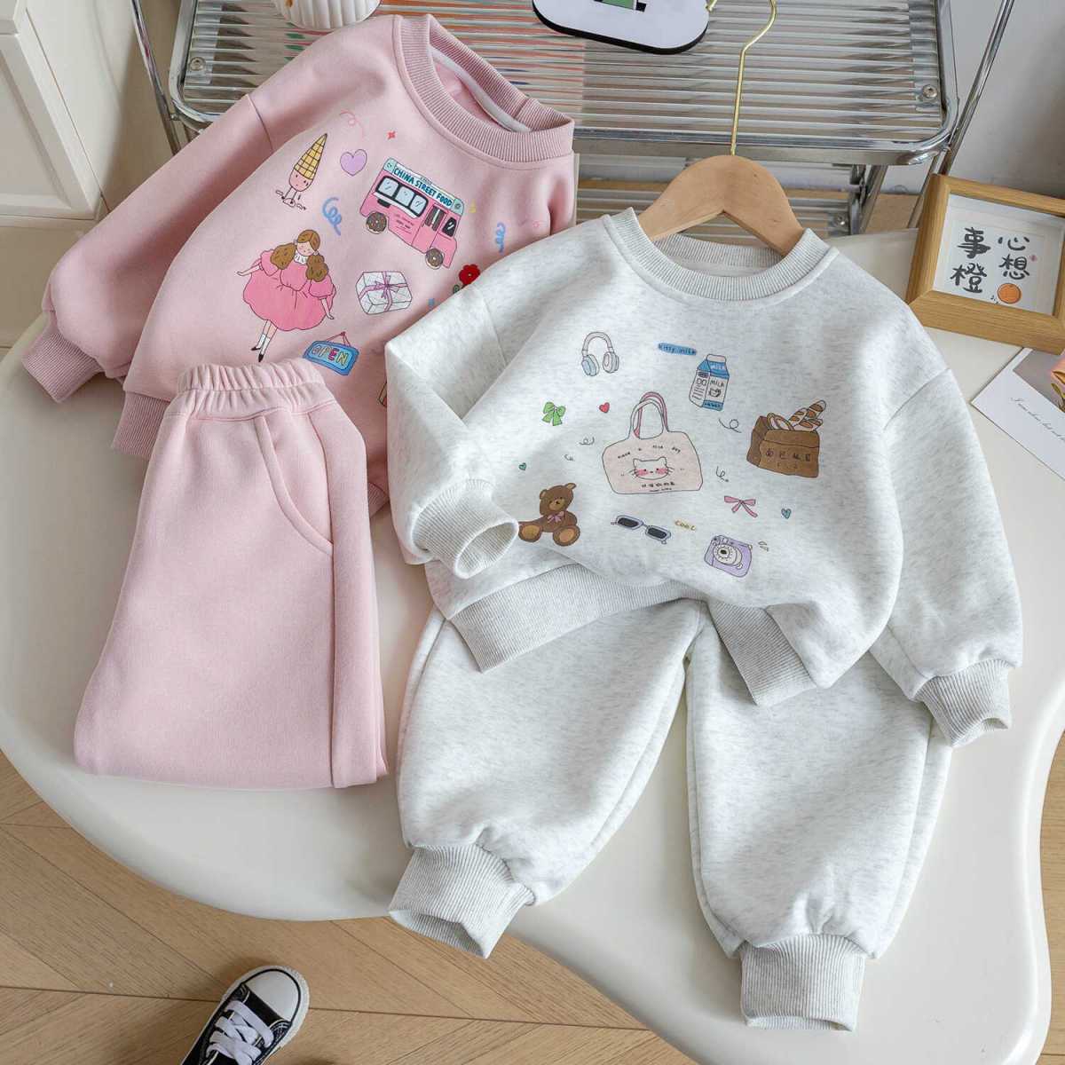 Conjunto de sudadera para niños Primavera Otoño 2025 Nuevo Estilo Ropa Deportiva para Niñas Dibujos Animados Moda Infantil Ropa de Otoño Conjunto de Dos Piezas para Exterior