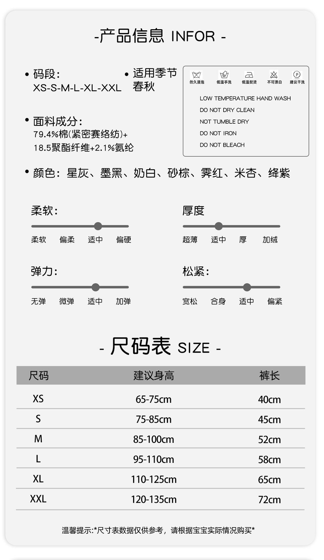 XS (Pants length 40cm, suggested 65-75cm, 6-12 months), S (Pants length 45cm, recommended 75-90cm, 1-2 years),...