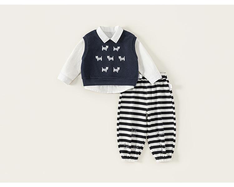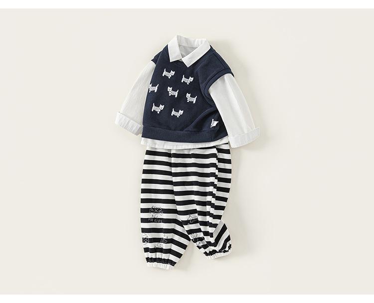 Bangxuan Otoño Nuevo Ropa para Niños Ropa Set Chaleco Tejido para Niños Pantalón Set para Bebé Niños Set de Tres Piezas para Niños