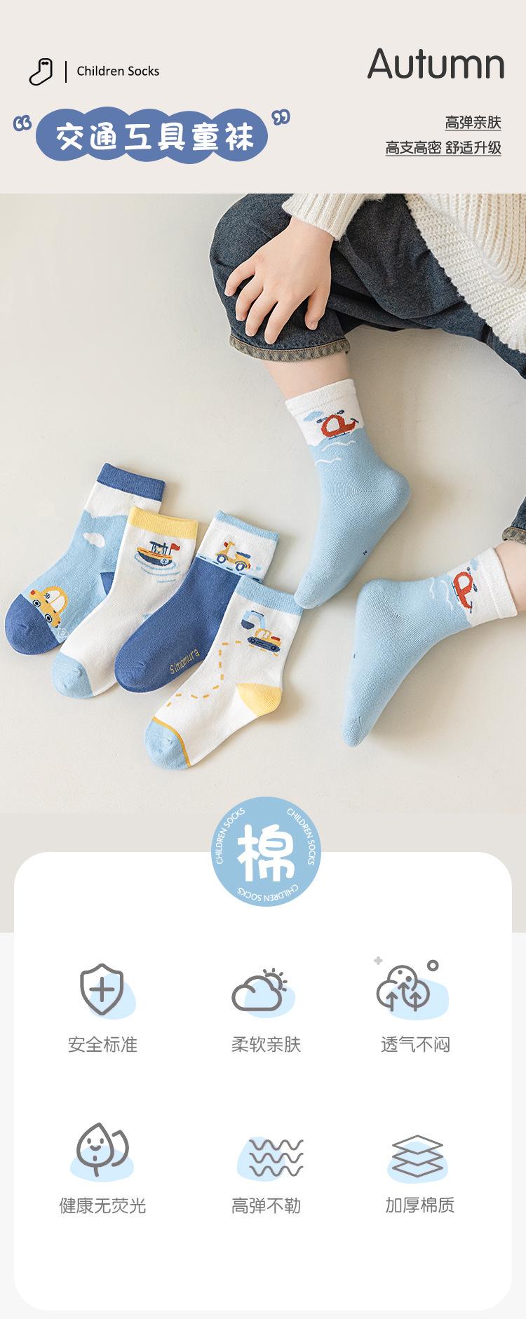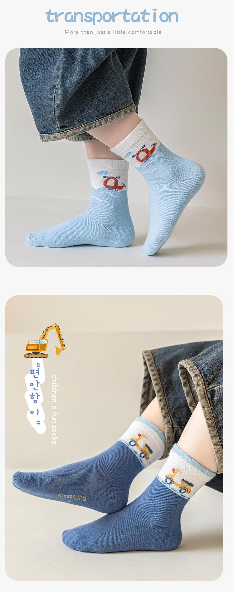 Envío Directo Calcetines para Niños Estilo Otoño Algodón Peinado Calcetines Media Caña Dibujos Animados Transporte Calcetines Deportivos para Niños