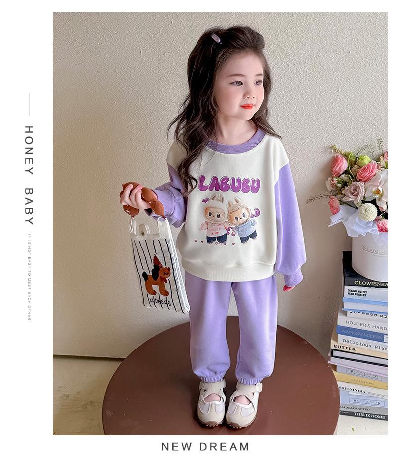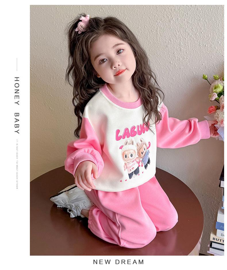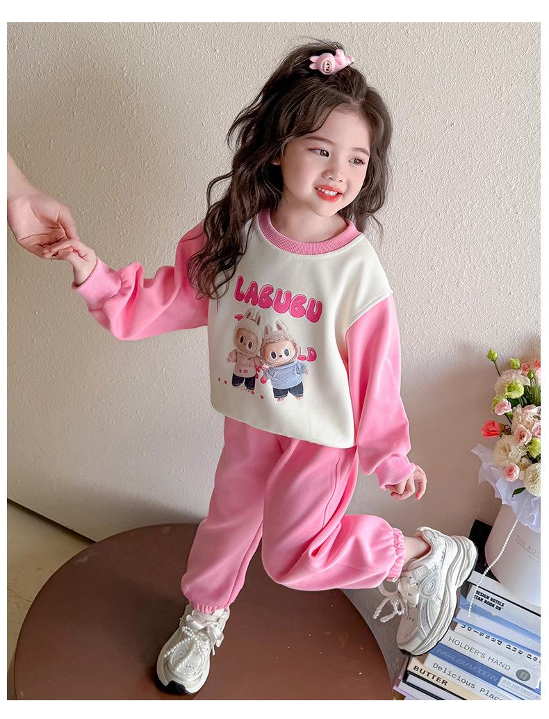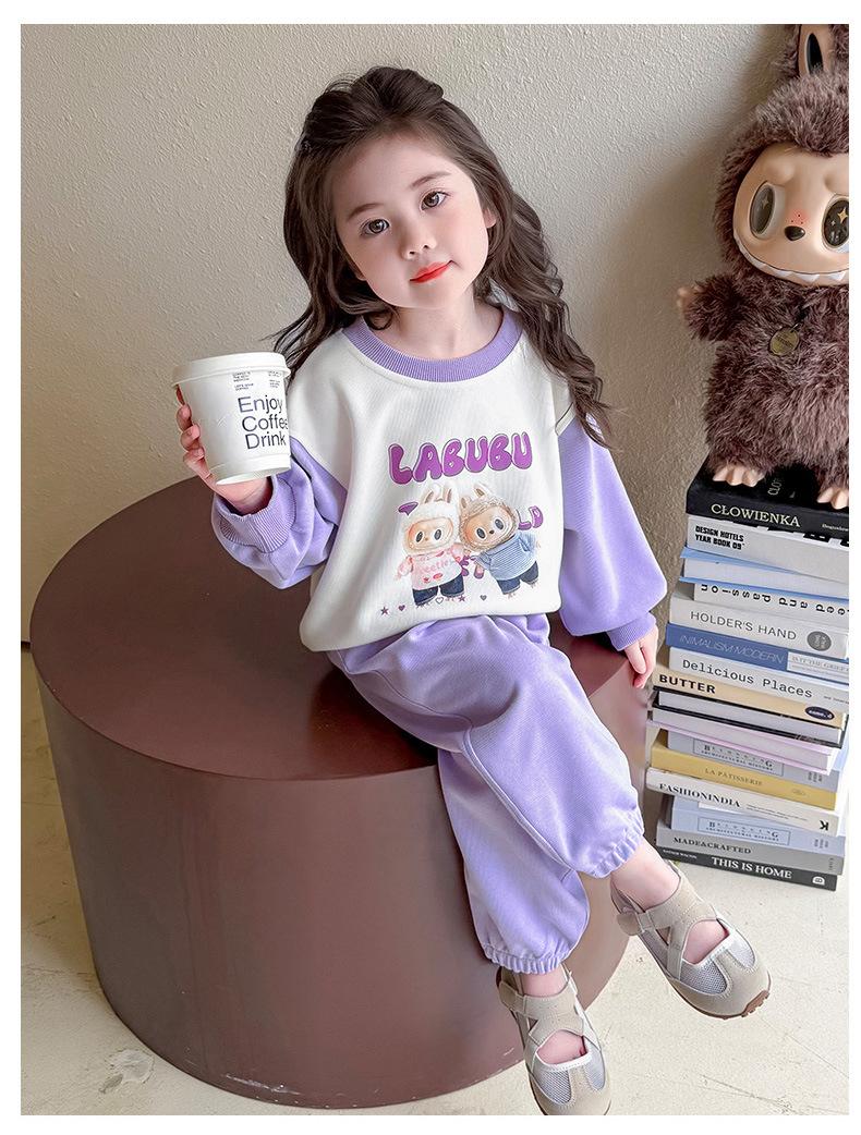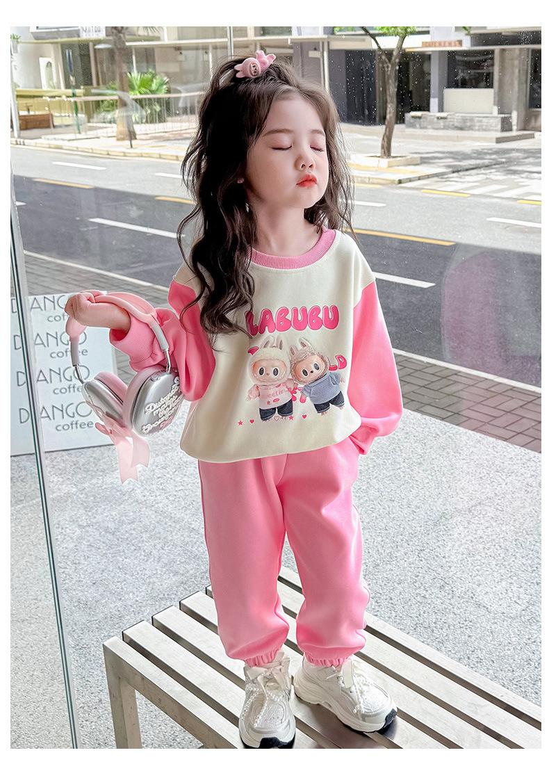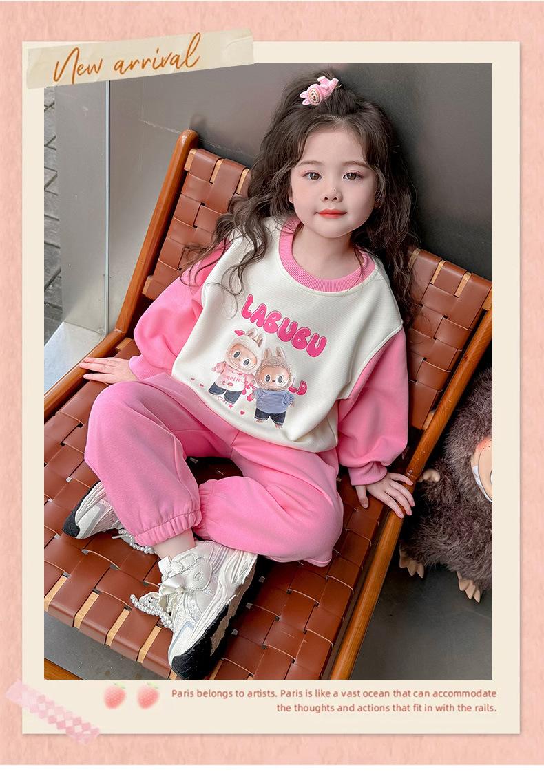 Otoño 2025 Nuevo Conjunto de Niñas Ropa de Otoño Elegante Infantil Bebé Sudadera Labubu Pantalones Conjunto de Dos Piezas