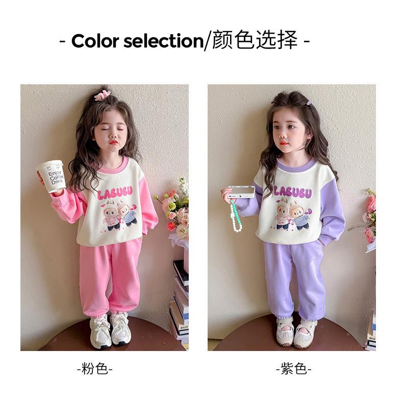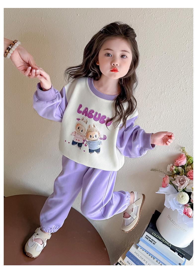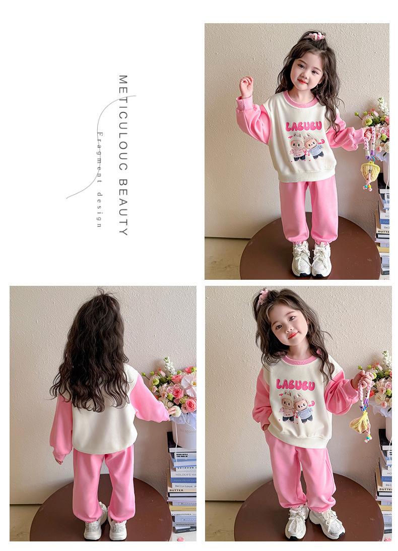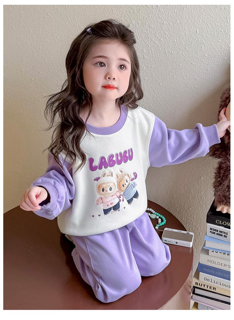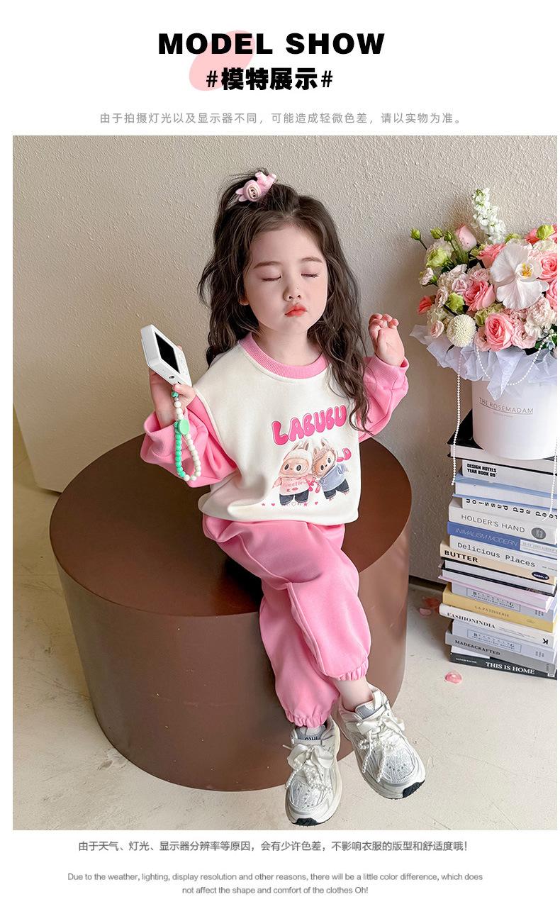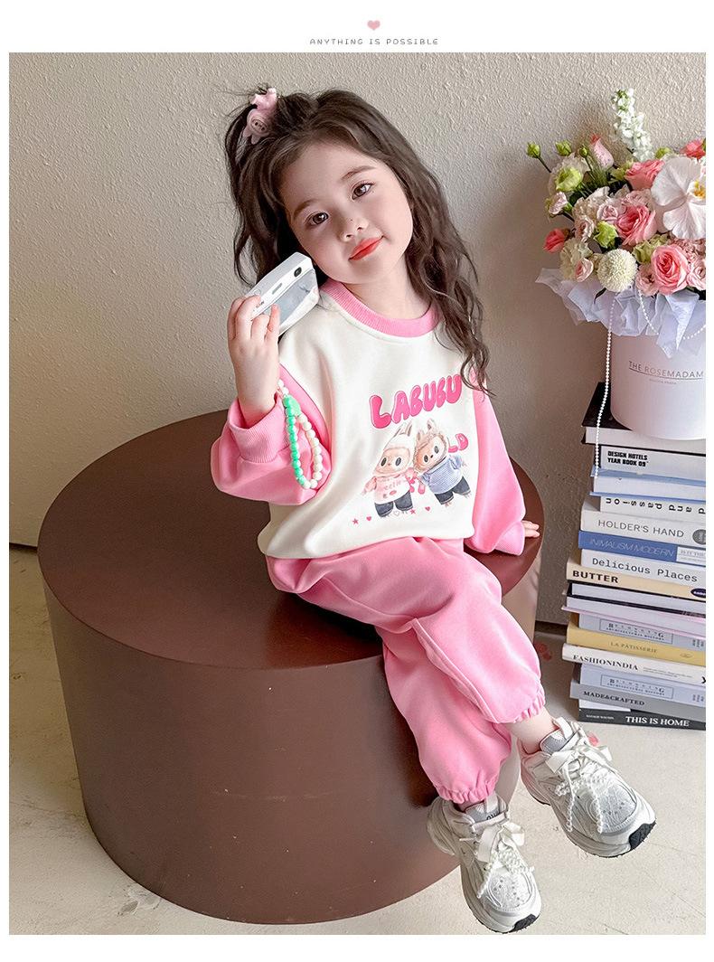 Otoño 2025 Nuevo Conjunto de Niñas Ropa de Otoño Elegante Infantil Bebé Sudadera Labubu Pantalones Conjunto de Dos Piezas