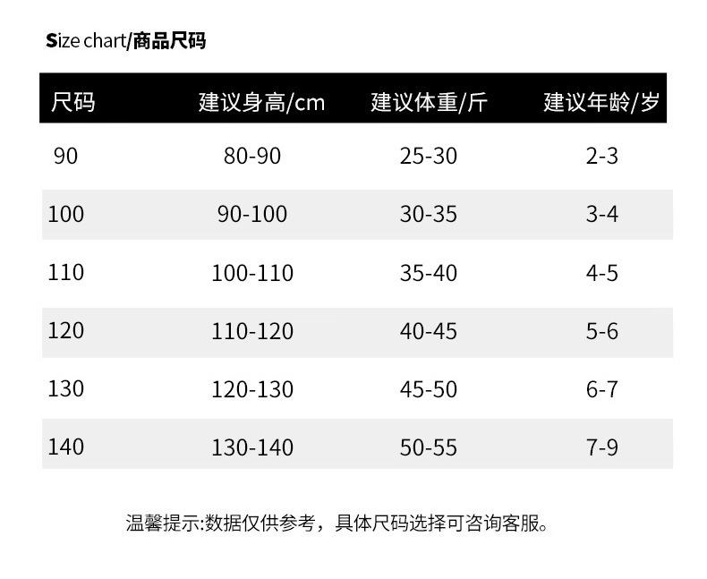 Children (3~8 years old, 100~140cm)