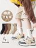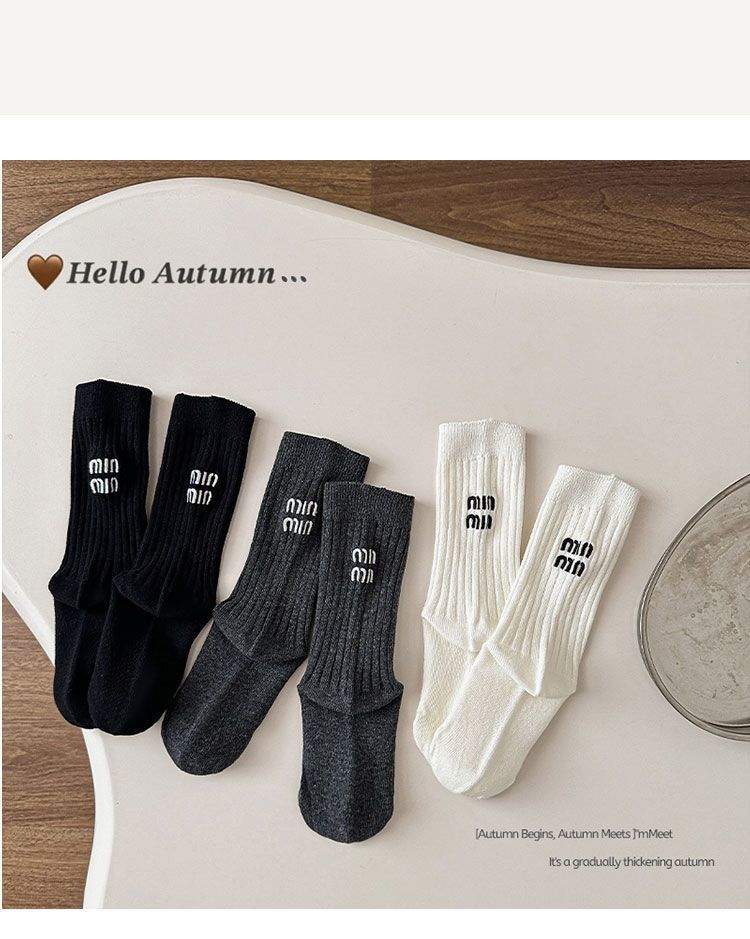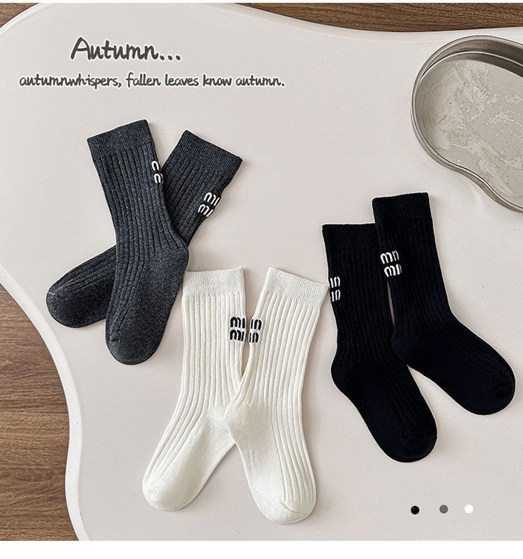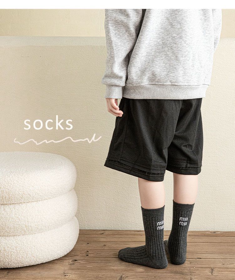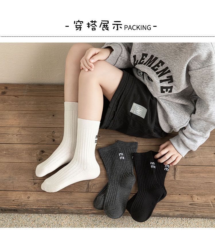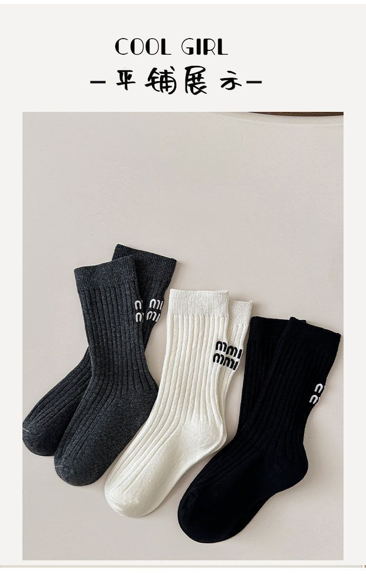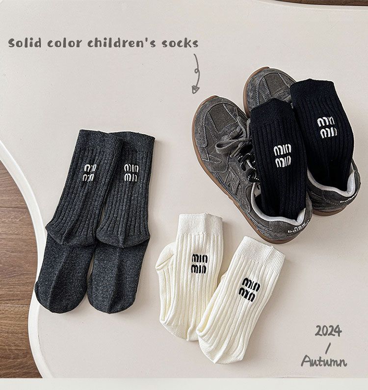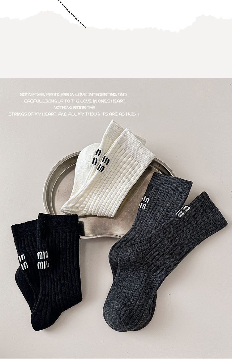 Calcetines para niños y niñas primavera otoño invierno ins japonés y coreano simple negro blanco gris letra doble aguja calcetines de moda media pantorrilla calcetines de algodón