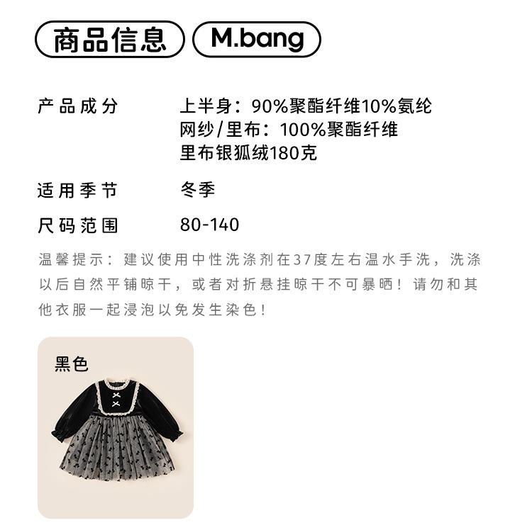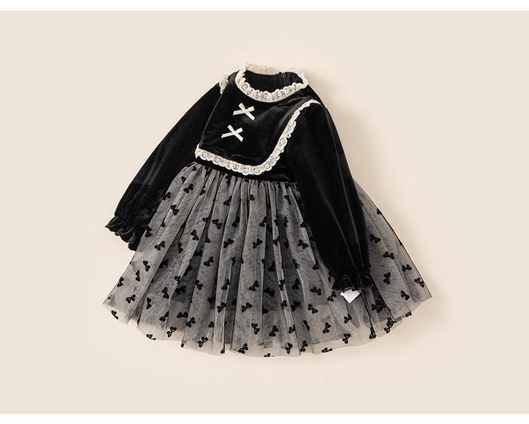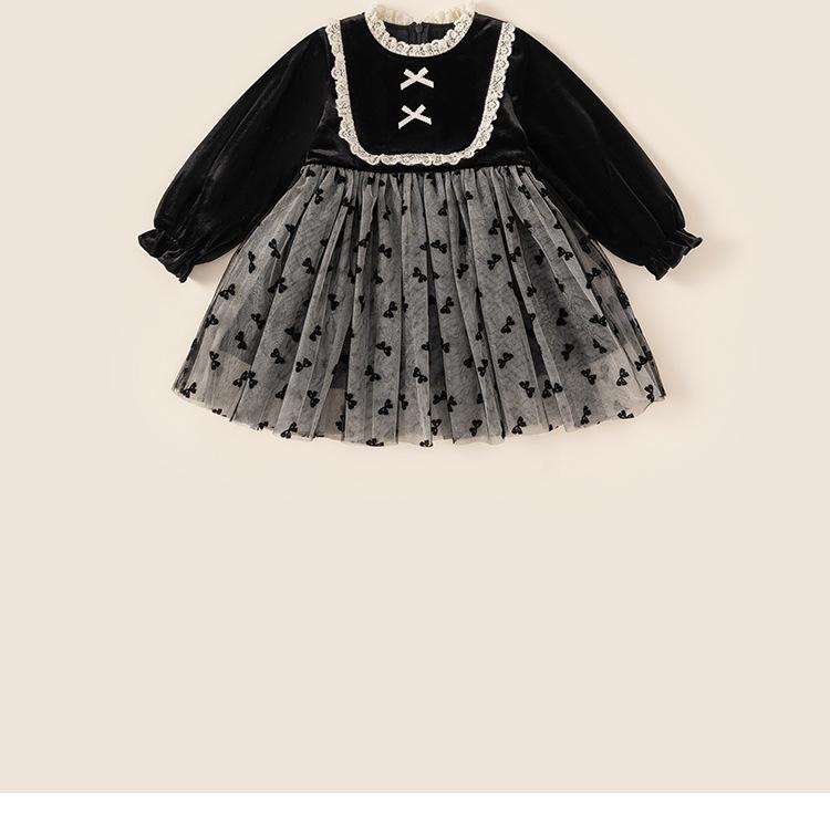 Ropa Infantil Bangxuan Moda Invierno Manga Larga Falda de Malla Vestido Infantil Vestido de Princesa para Niñas Vestido de Encaje para Niñas
