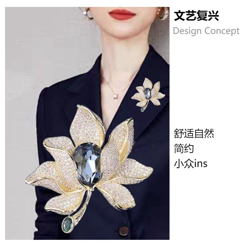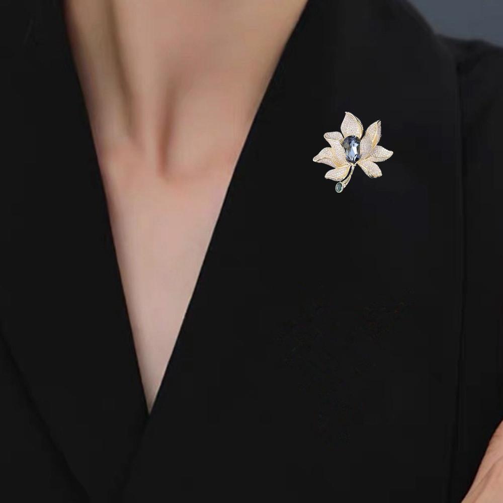 Nuevo Broche de Flor de Alta Gama Lujo Ligero con Circonitas Incrustadas Corsage Versátil Lujoso Elegante Accesorios para Prendas