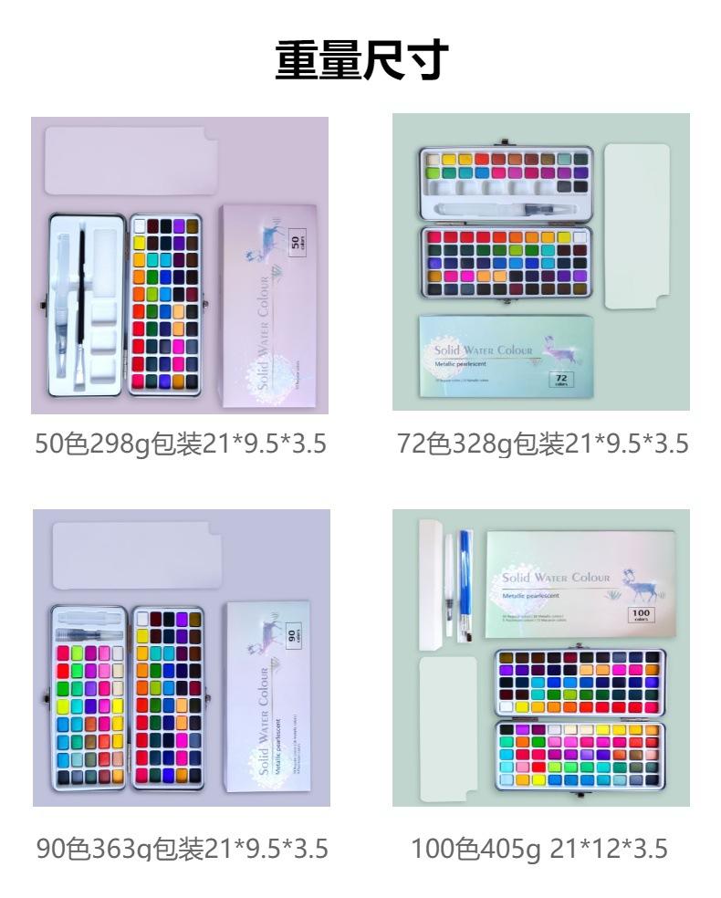 Set de acuarelas sólidas perladas 50 72 90 100 colores nail art floreciente principiante estudiante suministros de arte fabricante