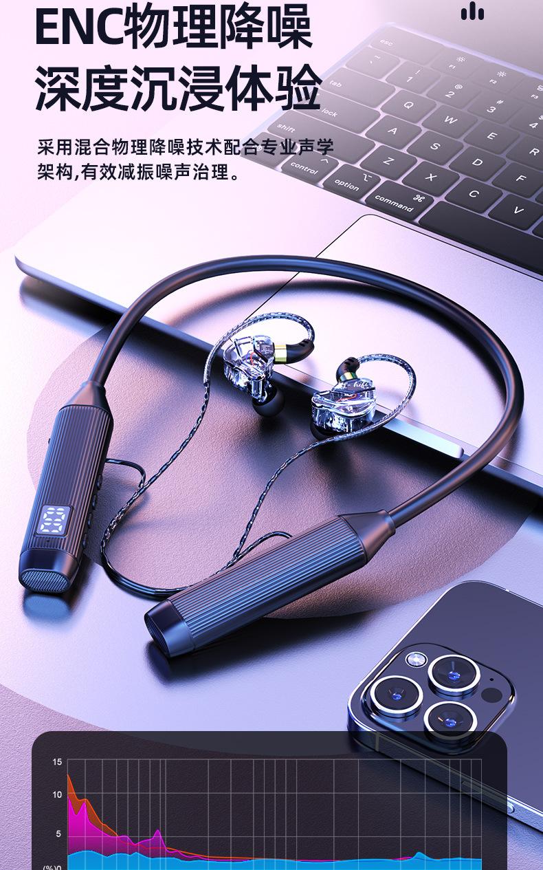 Nuevo Audífono Bluetooth 5.3 para Colgar en el Cuello, Duración de Batería Ultralarga, Reducción de Ruido, Adecuado para Apple y Android Audífono Inalámbrico In-Ear Deportivo