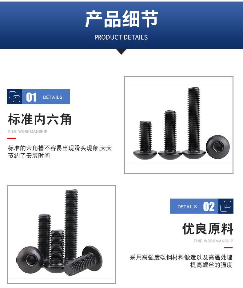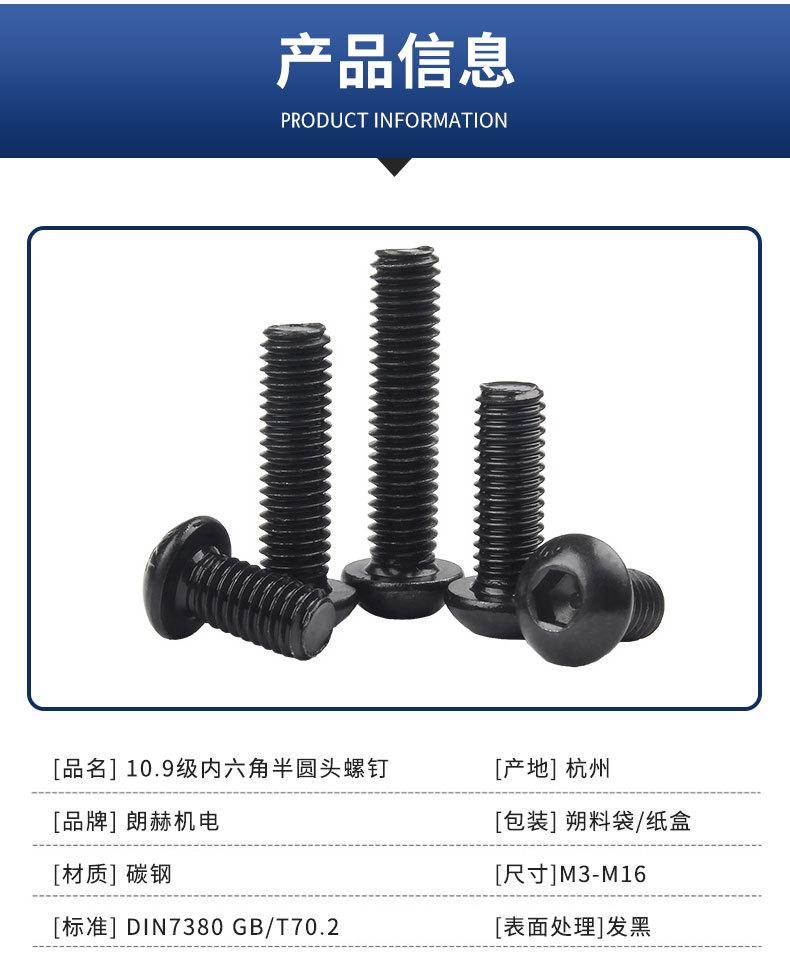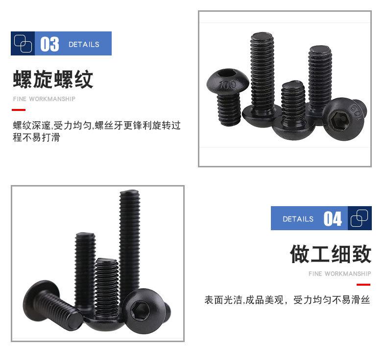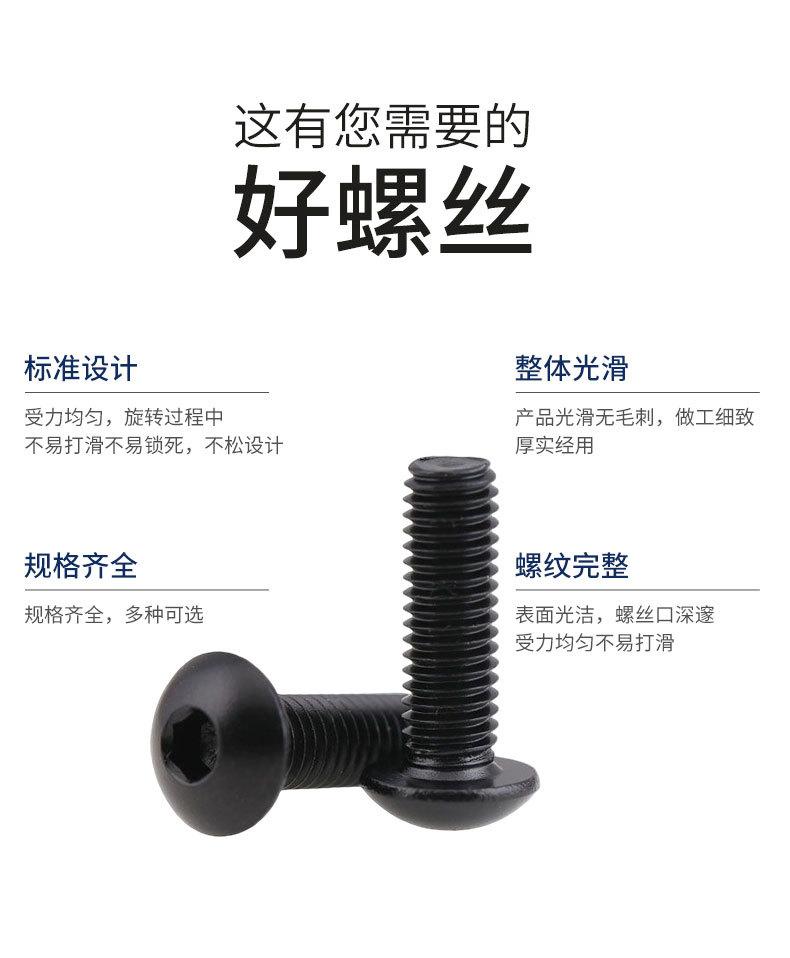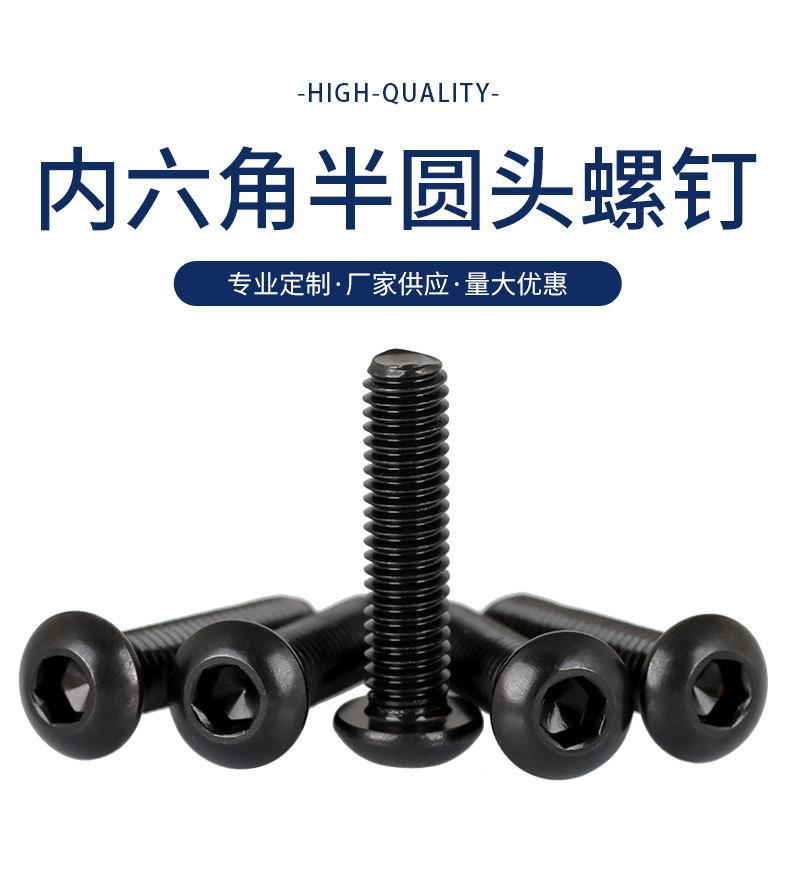 Tornillos de Cabeza Semirredonda Negra Grado 10.9 Venta al por Mayor Tornillos de Cabeza Pan Pernos de Alta Resistencia 3/m4 Copa Yuan