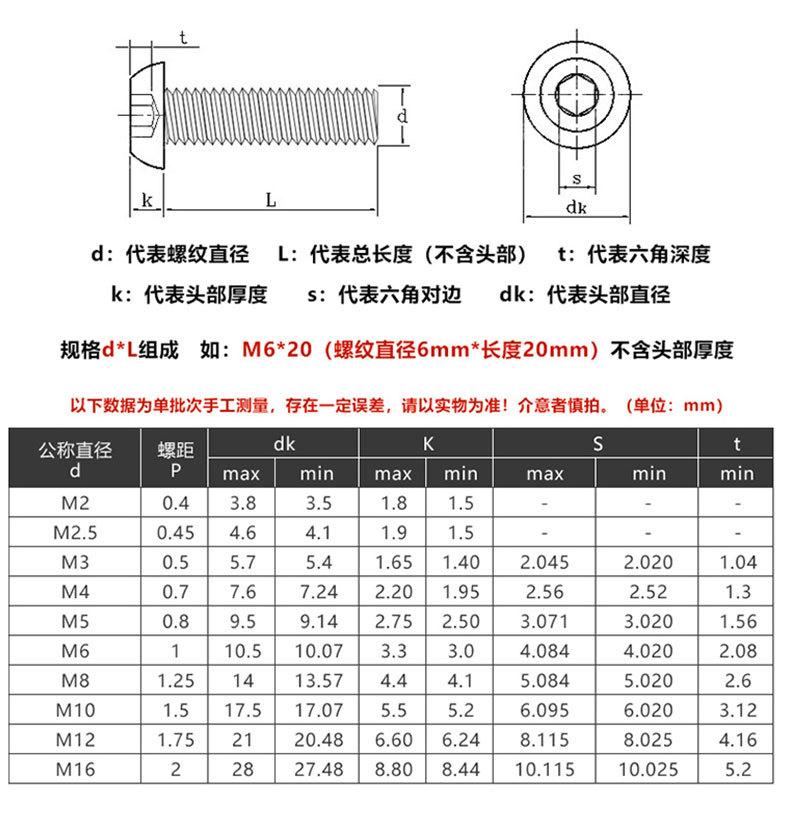 M3 * 5, M4 * 6, M5 * 8, M6 * 10, M8 * 25, M10 * 30, M12 * 35, M16 * 40, M20 * 45