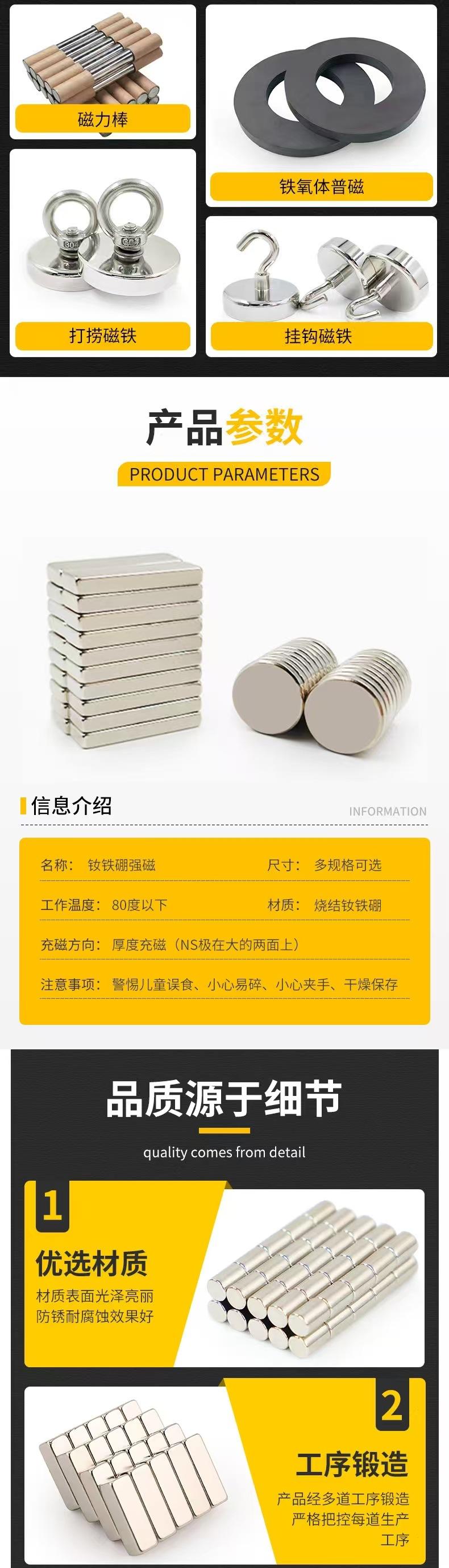 Fabricante Venta al por mayor Imán de ferrita Redondo Imán fuerte Negro Magnético General Magnético Rectangular Cuadrado Imán magnético fuerte
