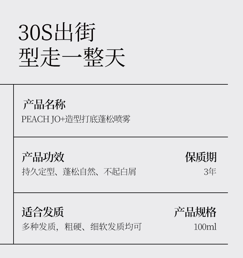 PEACH JO Melocotón como Base de Modelado Spray Acuoso Esponjoso para Hombres y Mujeres Sin Lavado Parte Superior Craneal Alta Gel para el Cabello Refrescante y Duradero