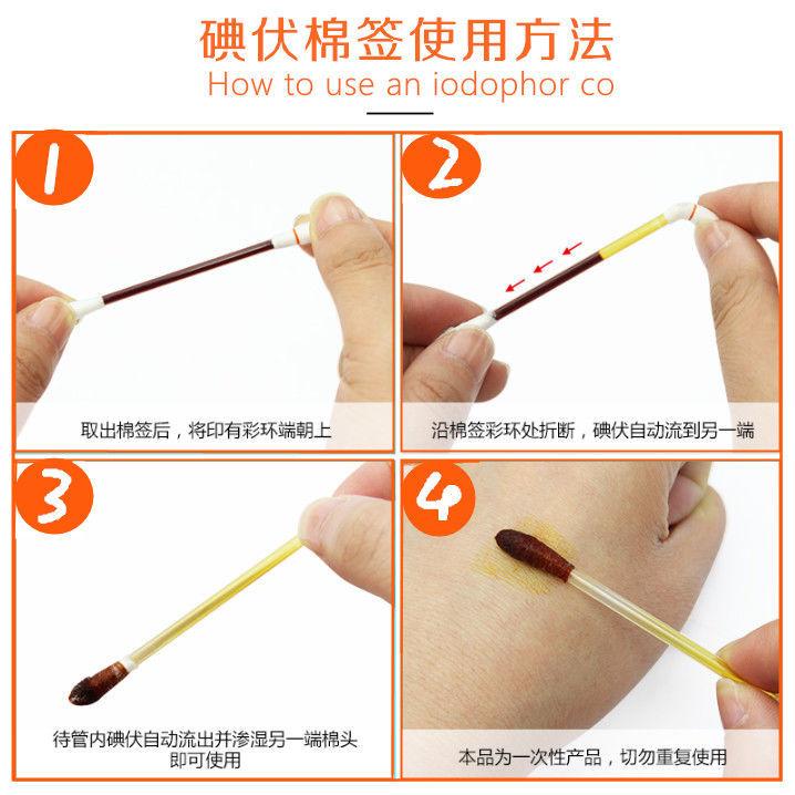 Exportación Transfronteriza Tiktok Temu Hisopos de Algodón con Yodóforo Desechables Empaquetados Individualmente Hisopos de Algodón con Alcohol Desinfección con Yodo