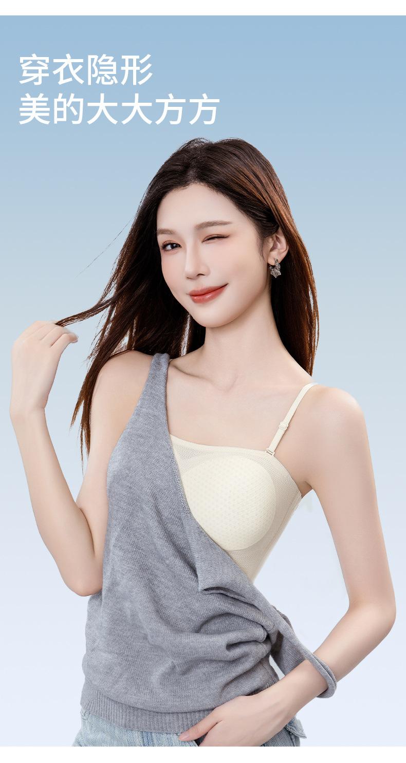 Verano Sin Costuras Sensación Fresca Hermosa Espalda Camiseta sin Mangas Sujetador Bandeau Pecho Pequeño Push Up Mostrar Pecho Antiexposición Antideslizante Fino