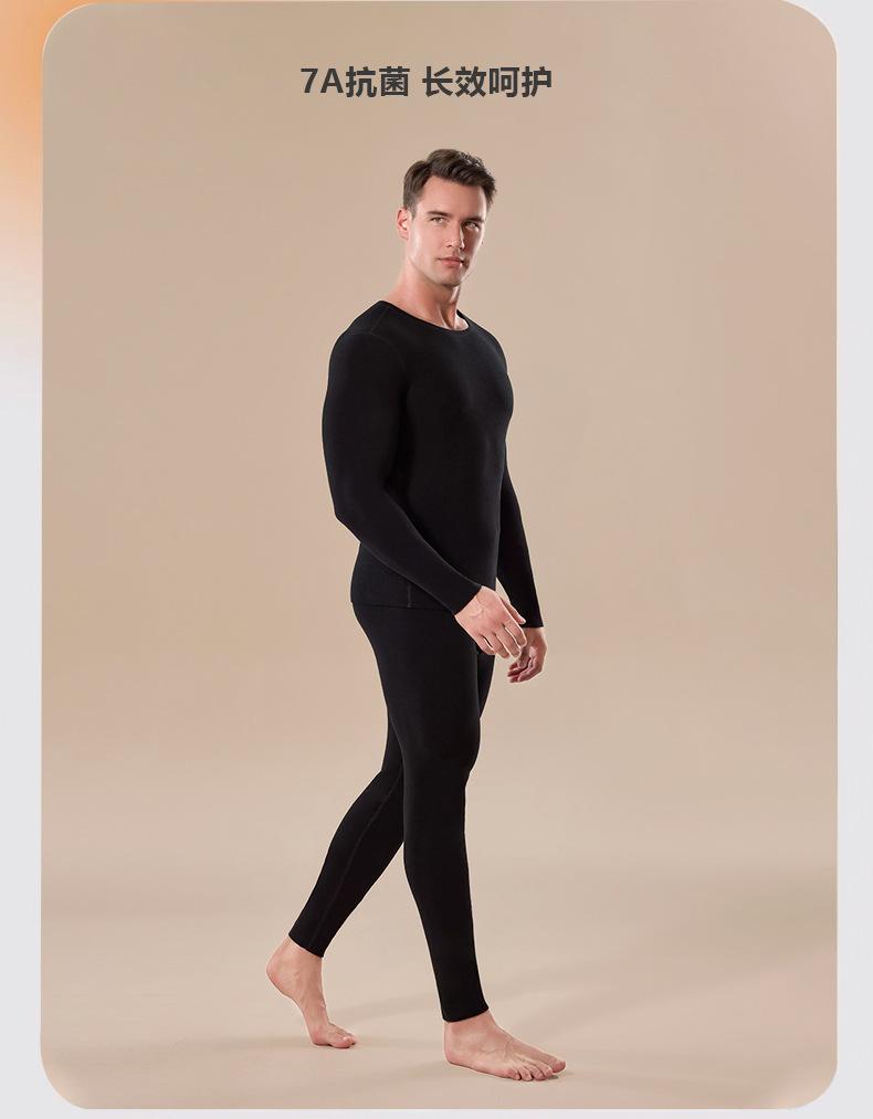 Conjunto de Ropa Interior Cálida para Hombre de Otoño e Invierno Cachemira 7A Antibacteriano Ropa y Pantalones de Otoño Sin Costuras Generador de Calor Terciopelo Alemán Ropa Cálida