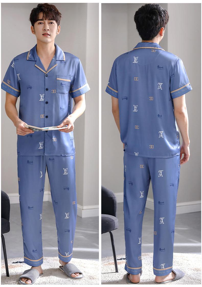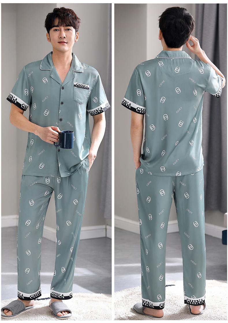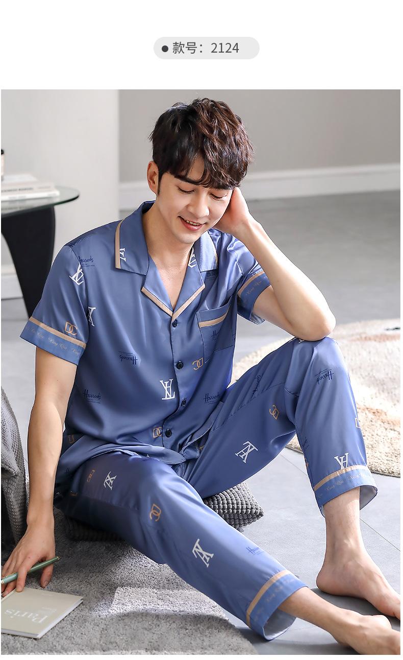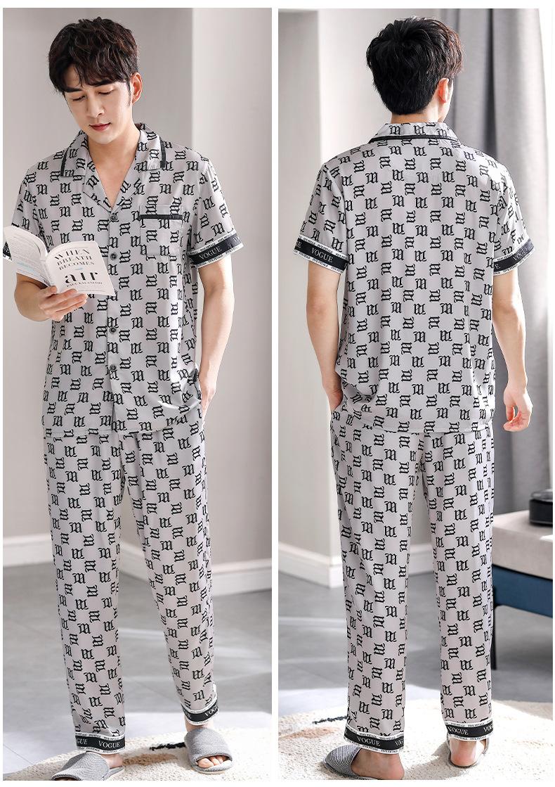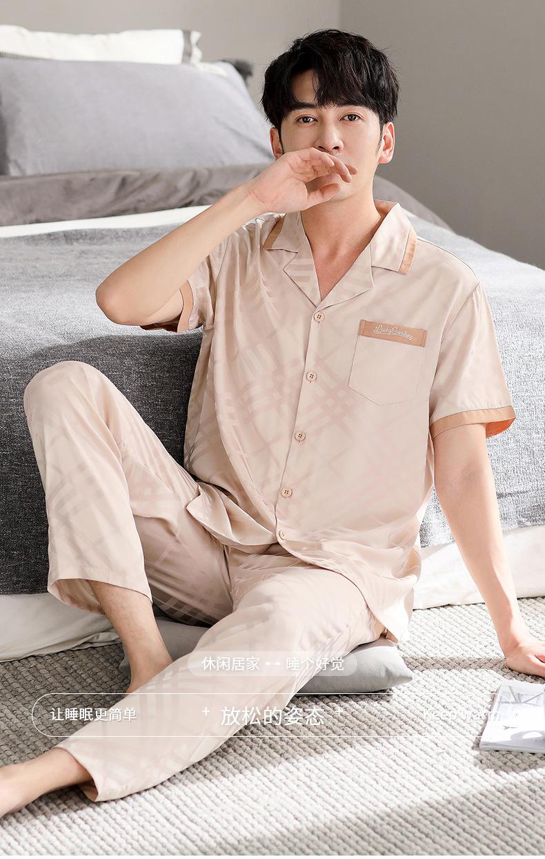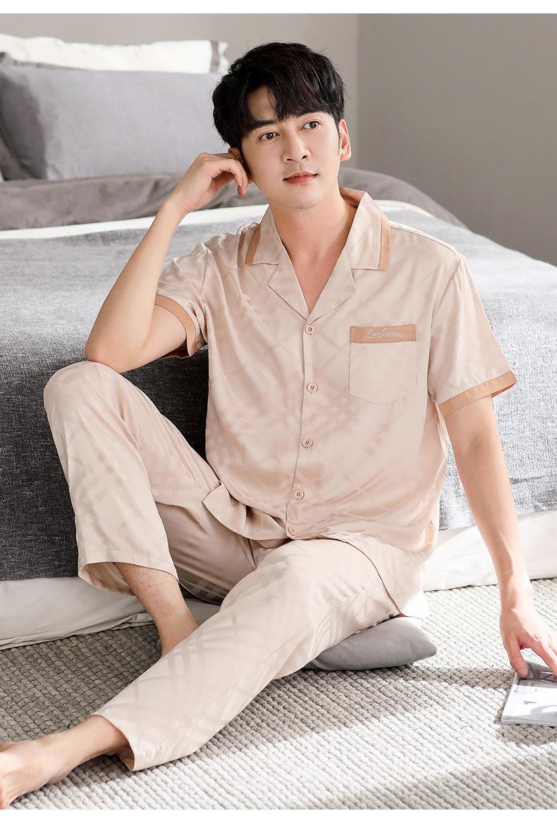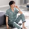 Pijama para Hombre Verano Seda Seda de Hielo Manga Corta Pantalón Ropa para el Hogar Verano Delgada Seda Imitación Traje de Alta Gama