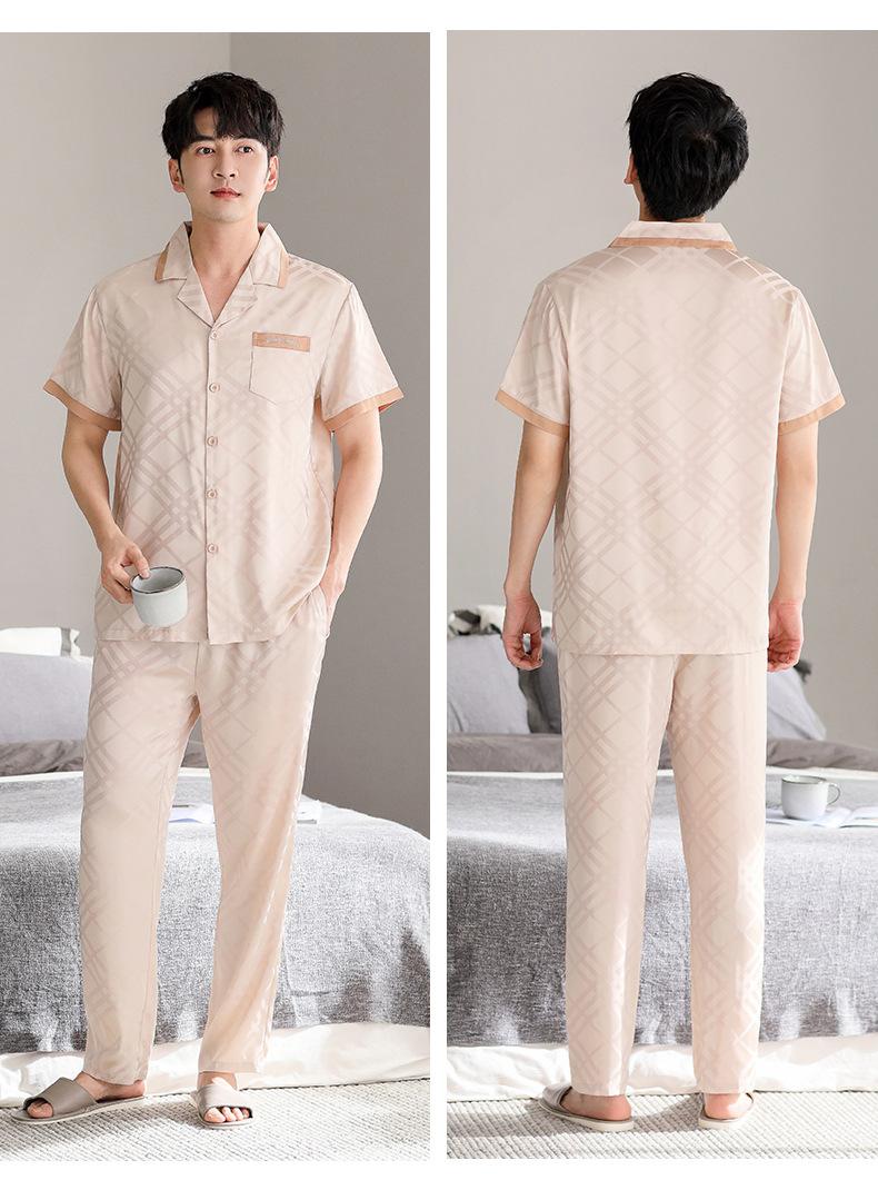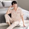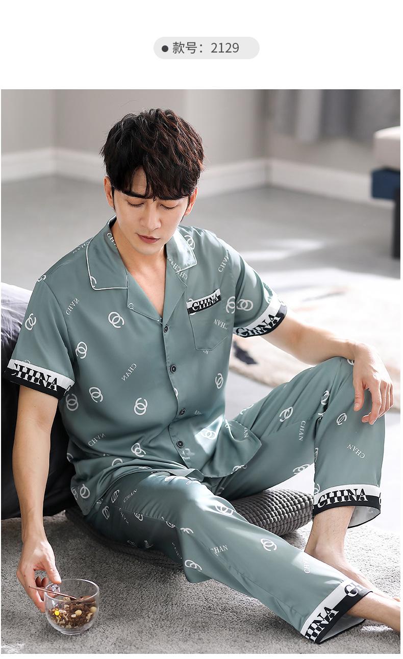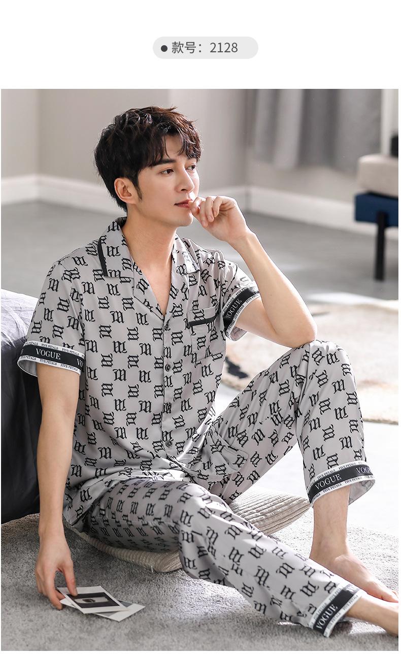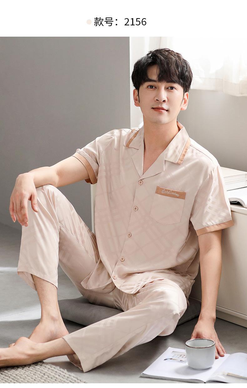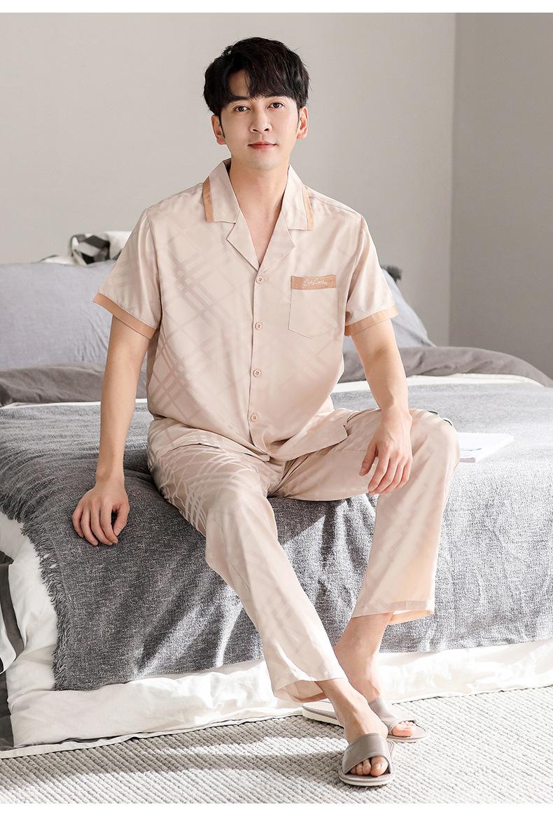 Pijama para Hombre Verano Seda Seda de Hielo Manga Corta Pantalón Ropa para el Hogar Verano Delgada Seda Imitación Traje de Alta Gama