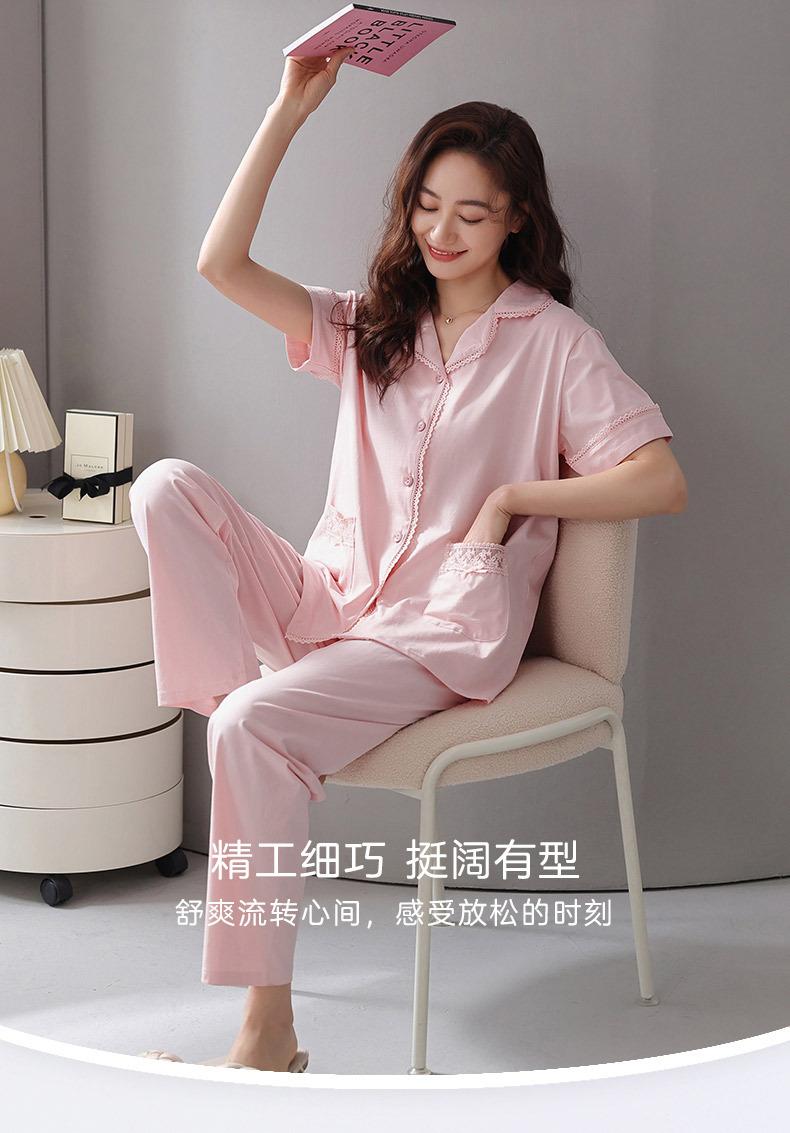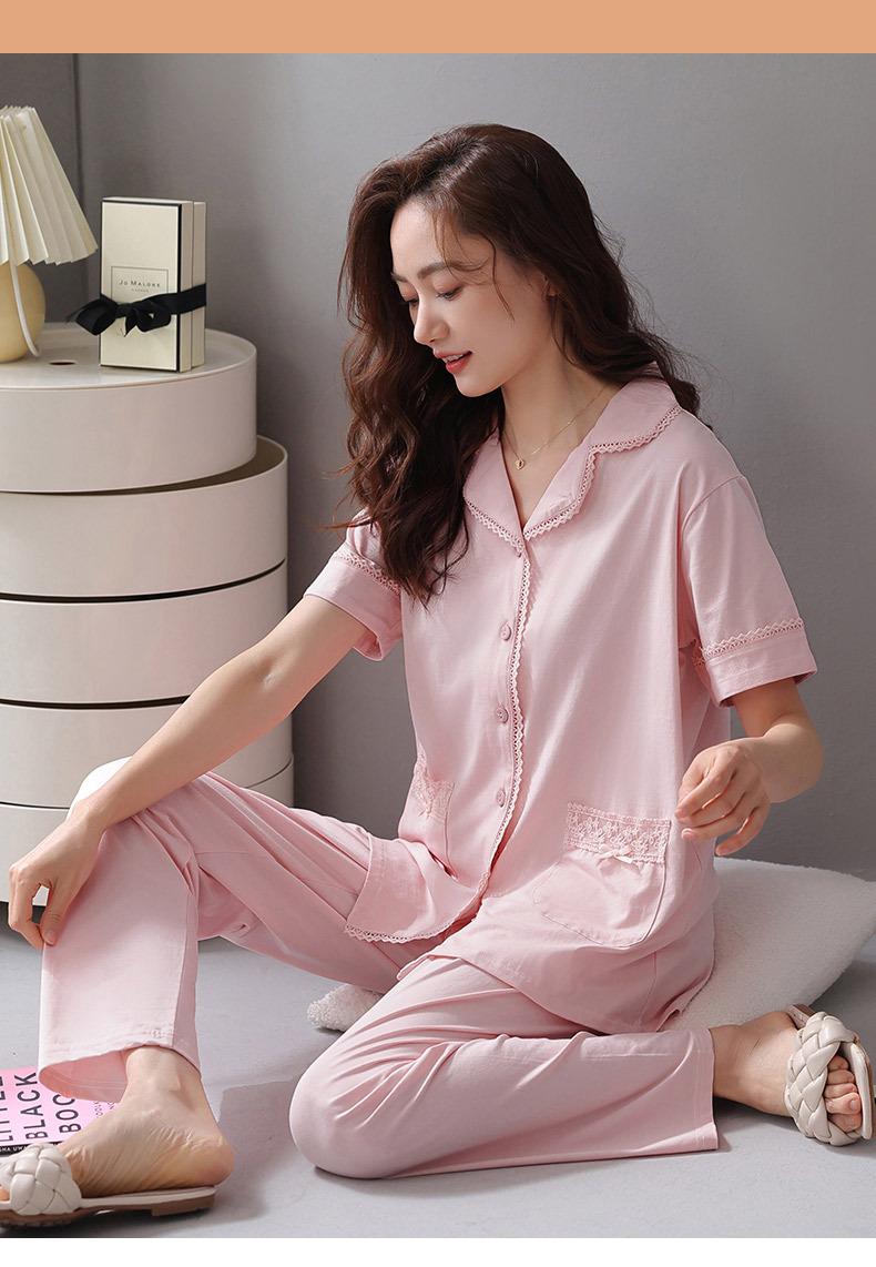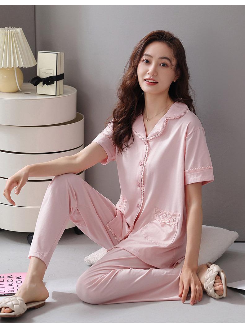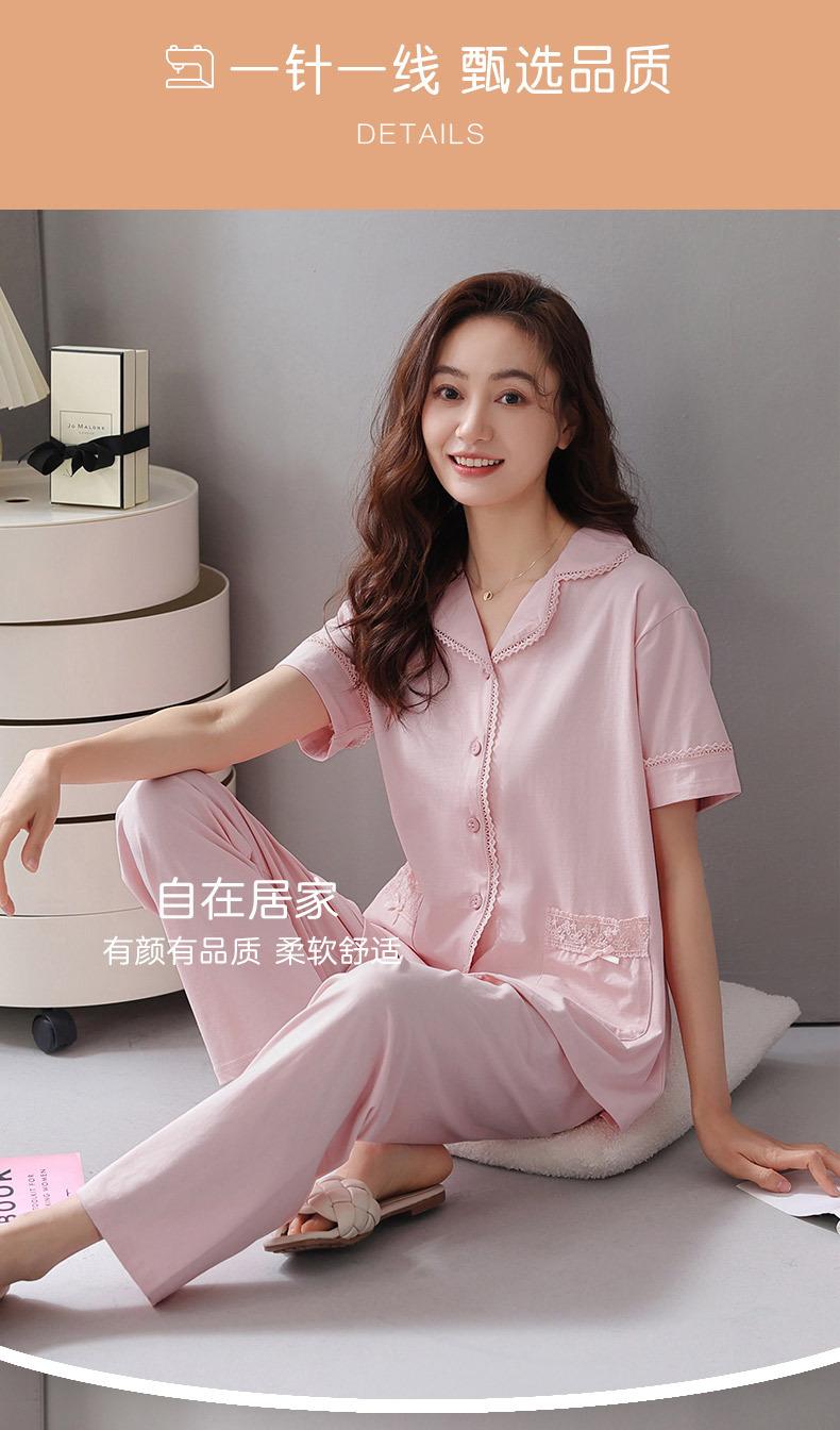 Compra Verano Nuevo Pantalón de Manga Corta Cárdigan Holgado Talla Grande Algodón Puro Pull-Up Pijama para Mujer Ropa de Casa Cómodo Traje de Algodón al por mayor en Joom.pro